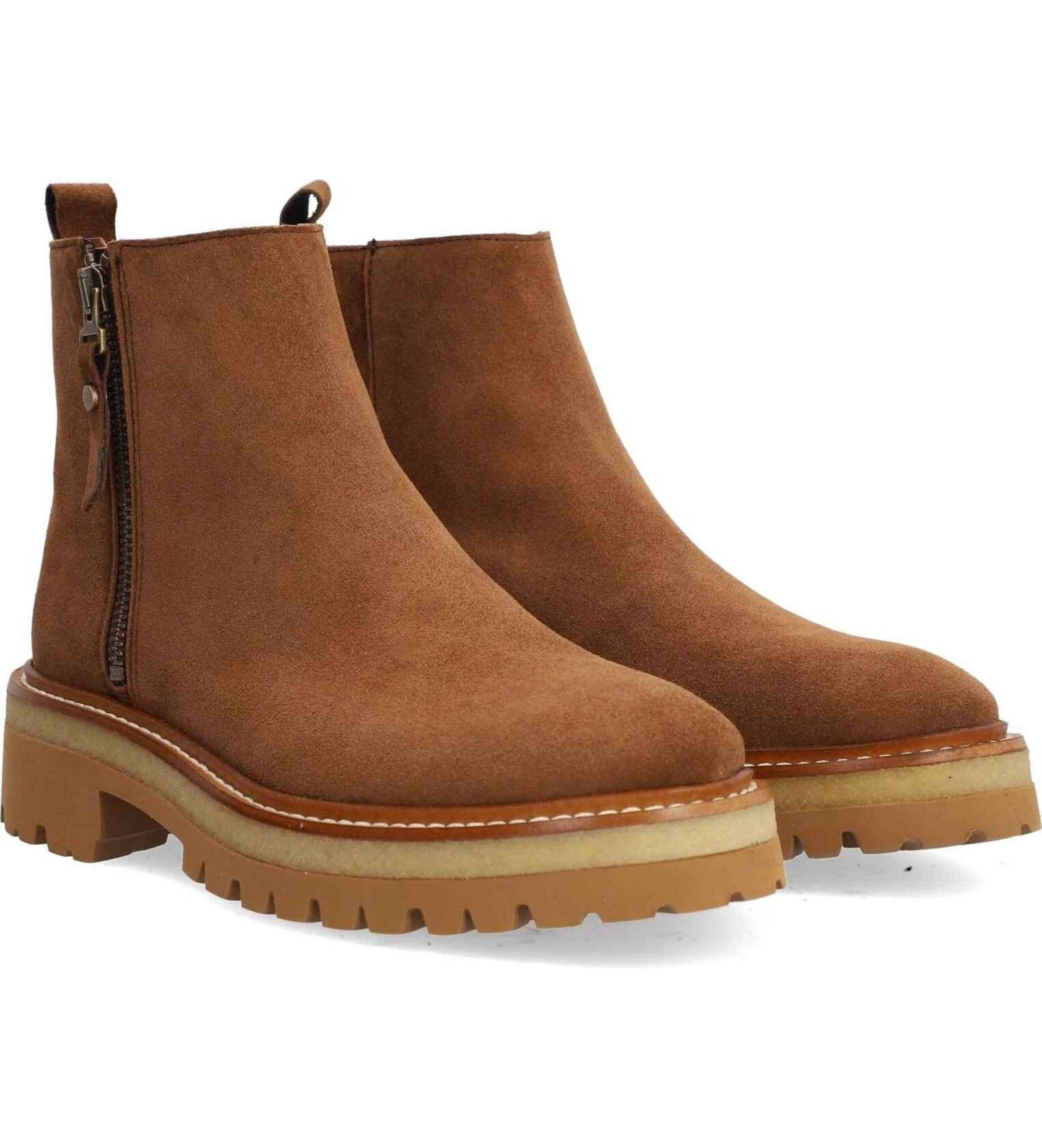 Ankelstøvler til kvinder ALPE NORDIC, fremstillet af læder (babysilke) i brun med 3,5 cm hæl, skridsikker sål og rund tå, med lynlås og lavt ben.