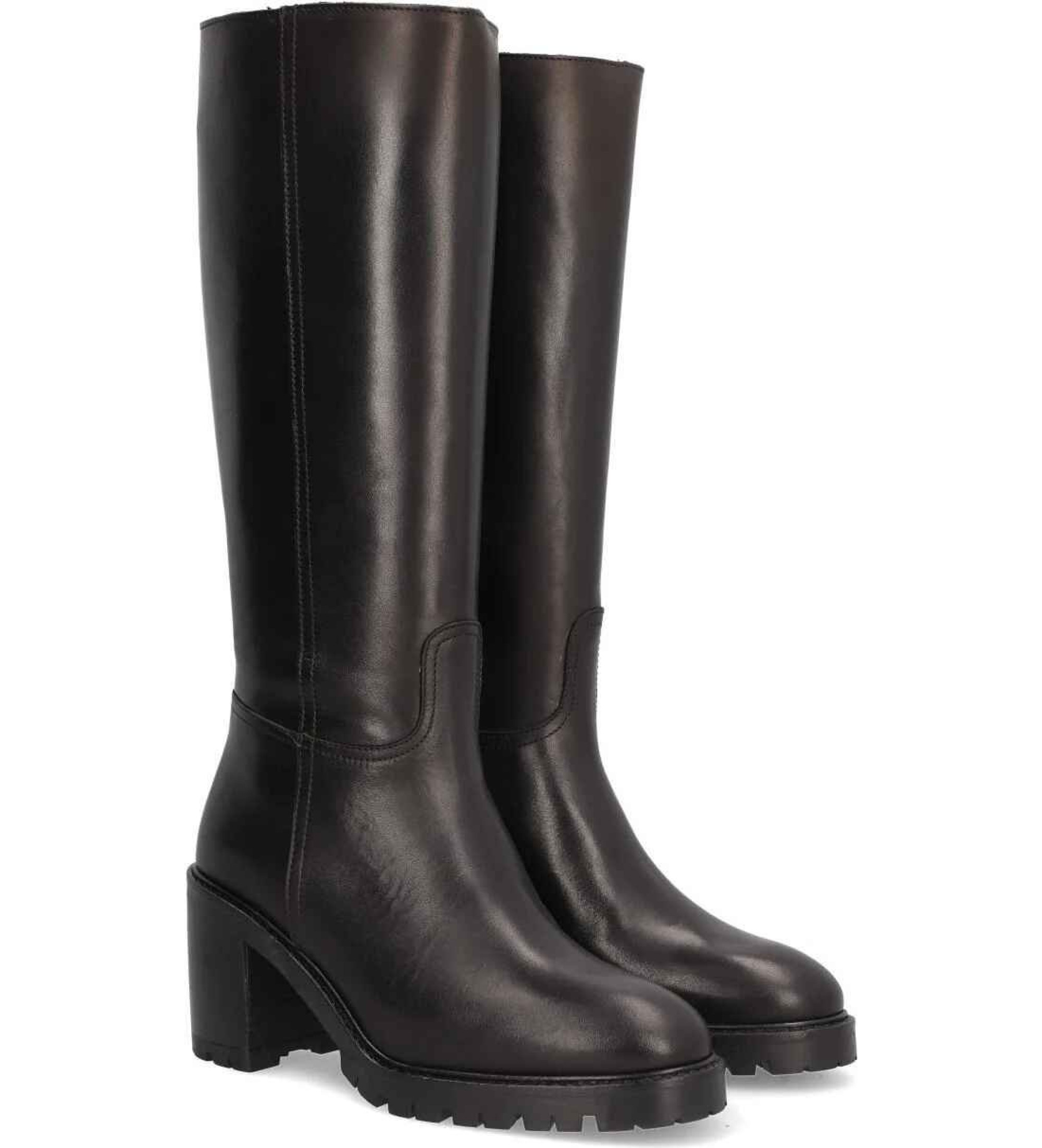 ALPE VALLEY damestøvle, fremstillet af læder (ball lux) i sort med 8 cm hæl, skridsikker sål og rund tå, med lynlås og højt skaft.