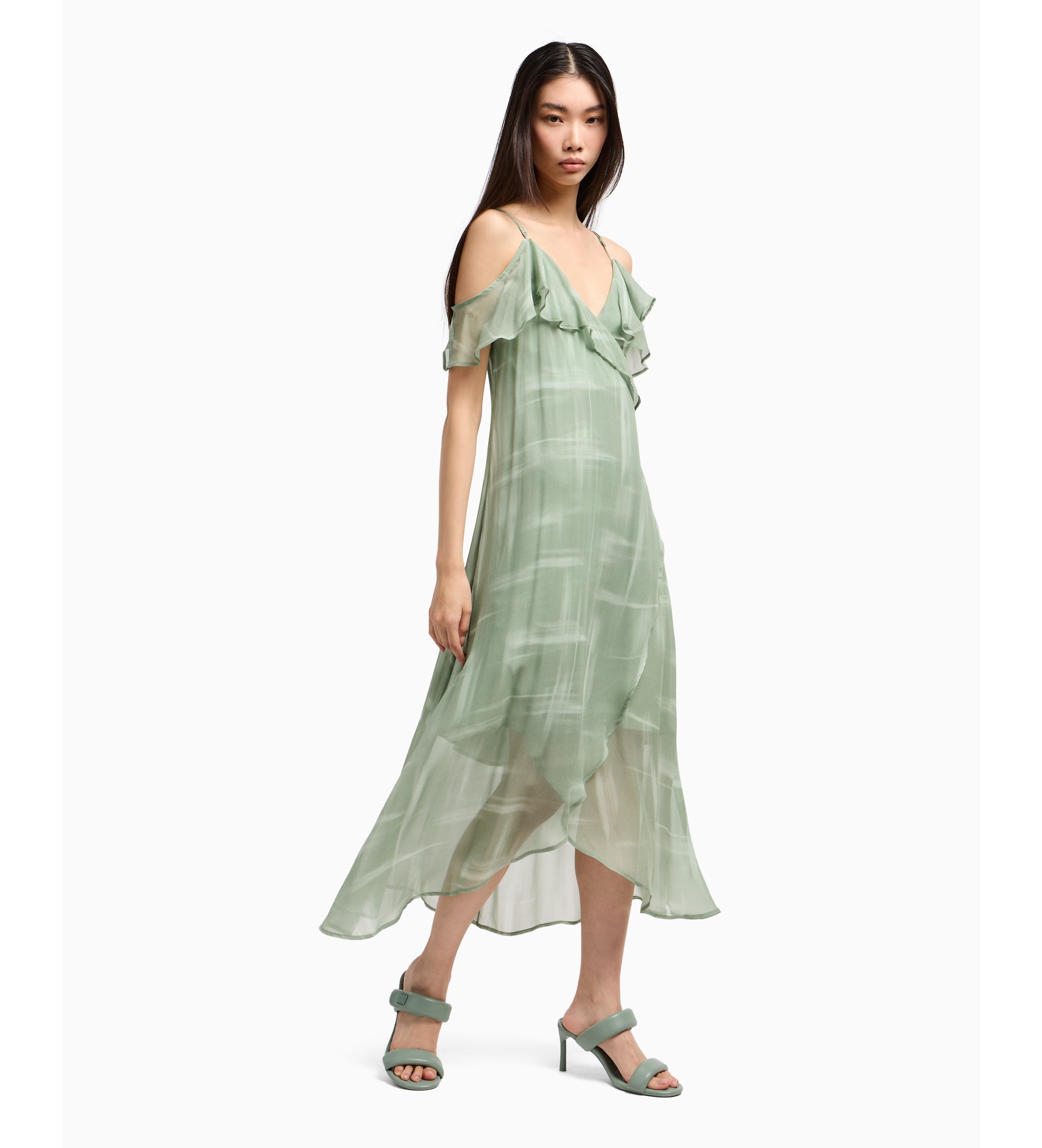 Denne crossover maxikjole er et elegant og feminint stykke tøj, der er ideelt til særlige lejligheder. De tynde, justerbare stropper med flæsedetaljer giver designet et delikat og sofistikeret touch. Den usynlige lynlås i siden sikrer en perfekt pasform, mens det metalliske logo bagpå tilføjer en markant detalje. Det indvendige for sikrer ekstra komfort og en upåklagelig pasform. Denne kjole er perfekt til enhver begivenhed og kombinerer stil og komfort på en unik måde.