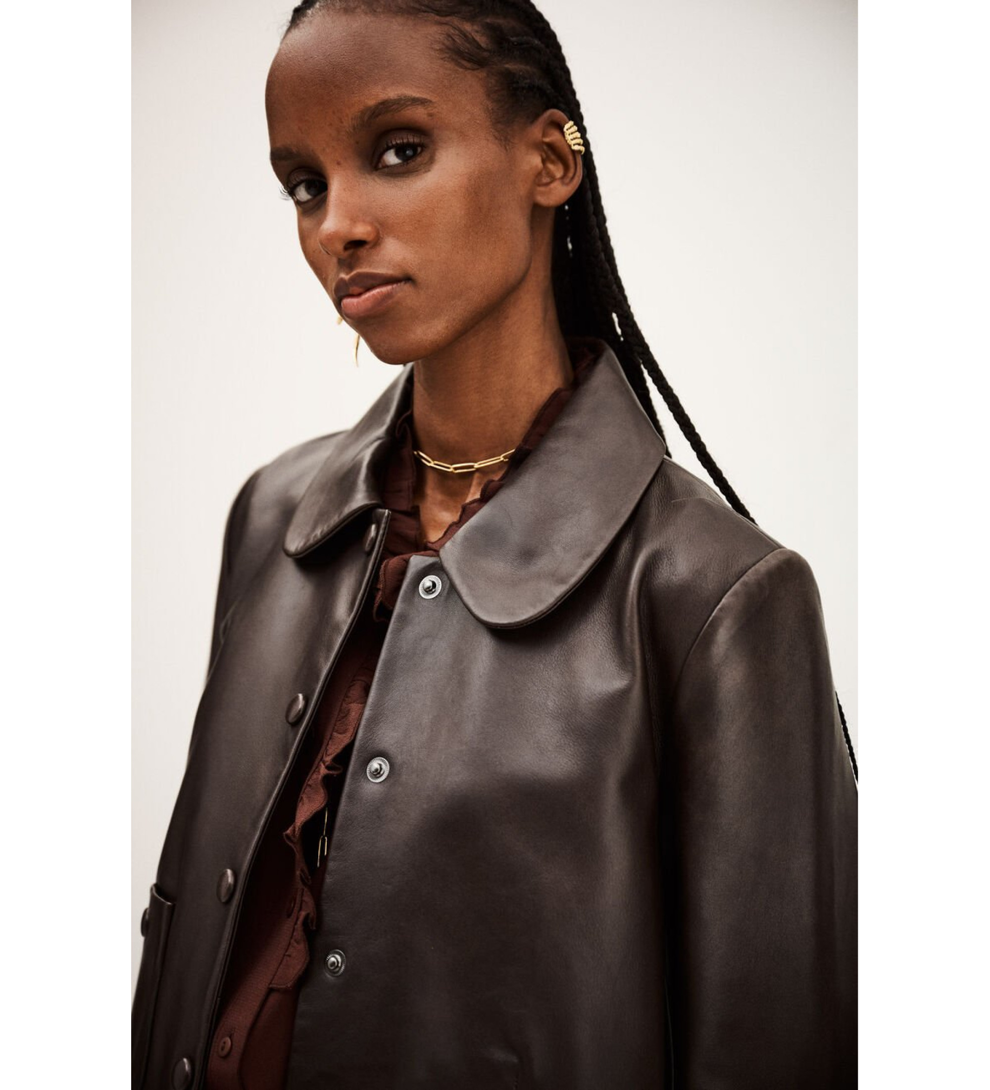 MILOS-jakken er en yndig, elegant og original model, præcis som vi kan lide den. Den er kortskåret, har halvlange ærmer og lukkes med en række læderbeklædte trykknapper. Peter Pan-kraven er vores favorit, den er både retro og glamourøs, og effekten er uforglemmelig i forbindelse med udskæringer og rynker. Sæt den sammen med en nederdel med lige snit og høje hæle for et retrolook, der er Jackie Kennedy værdigt!