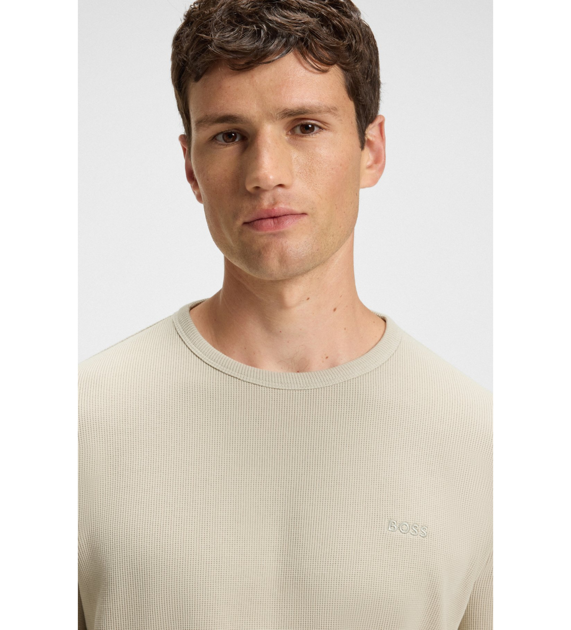 Denne BOSS Menswear T-shirt med almindelig pasform er ideel til lag-på-lag og er fremstillet af vaffelstof med stretch og et højt bomuldsindhold. Den er afsluttet med et diskret broderet logo.