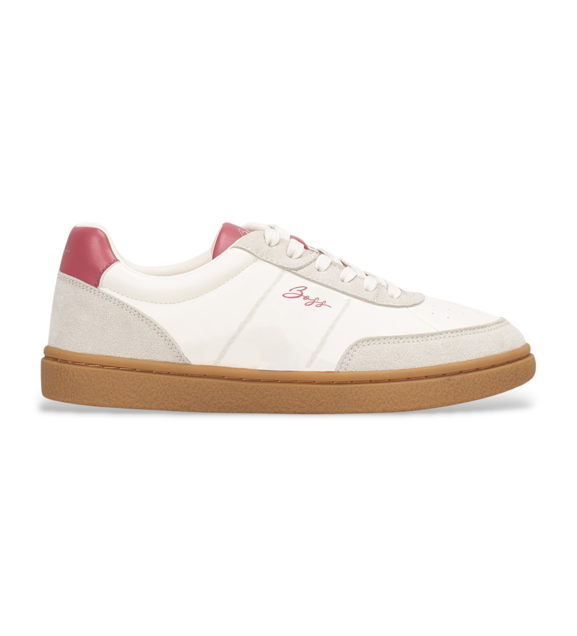 Tidløs raffinement i en ecru nuance. Denne sneaker med court-cut fusionerer nylonens ædelhed med ruskindets tekstur i en off-white total look-palet, der formidler ubesværet, rolig elegance. Subtile, hævede syninger på kroppen og BOSS-signaturen i kursiv giver dybde og karakter til et bevidst rent design. Et luksuriøst must-have, der løfter ethvert look med underspillet lethed.