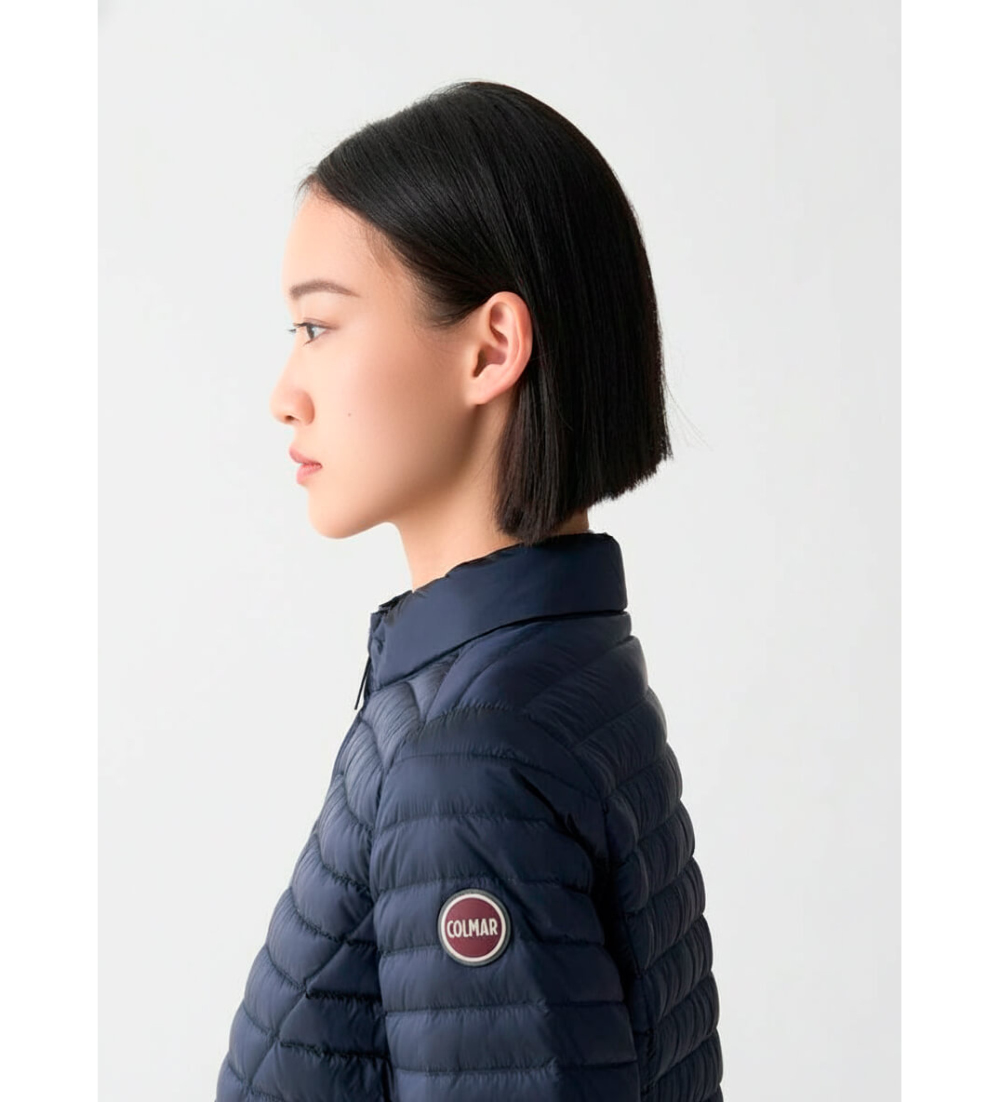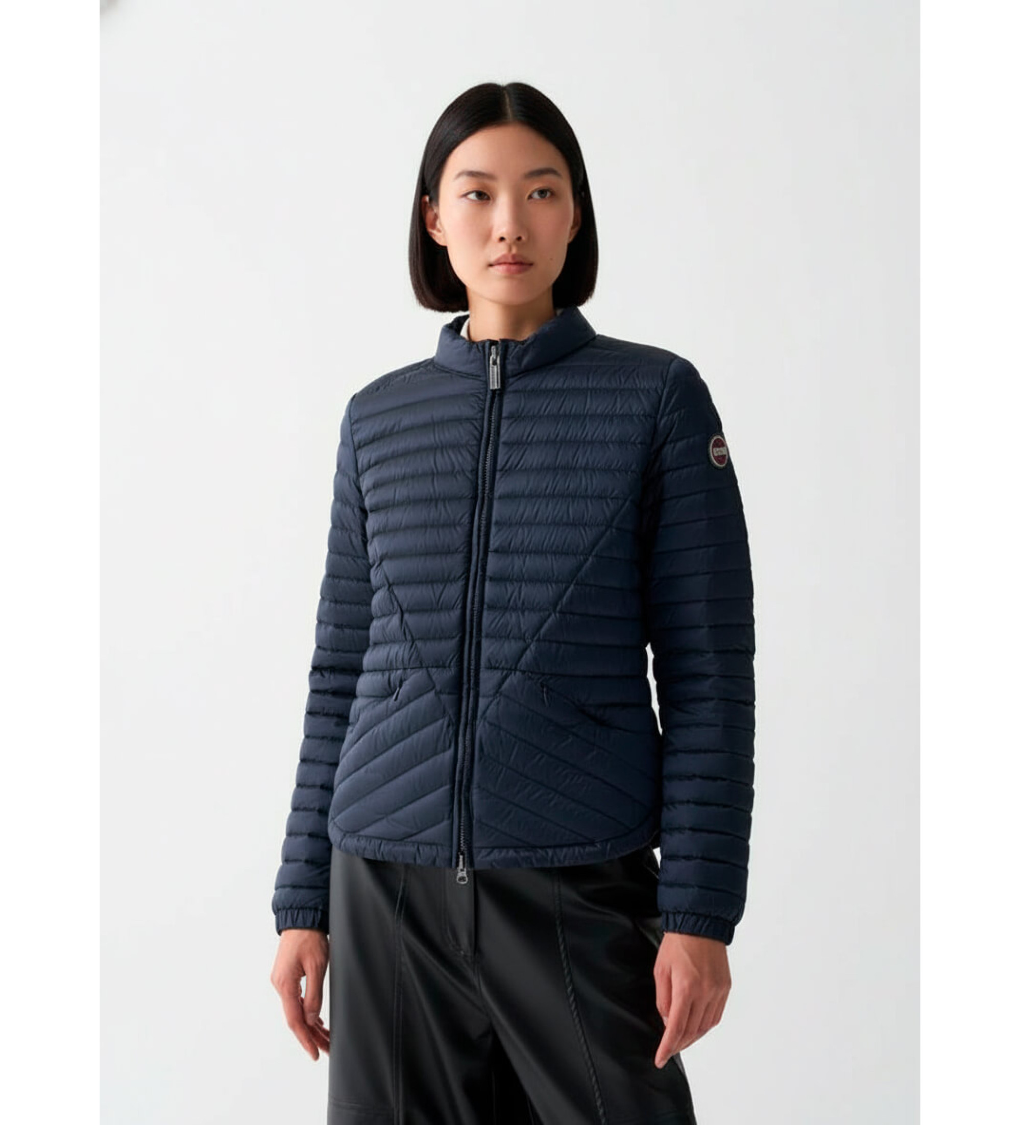 Denne damejakke er sporty i sine tekniske egenskaber, men med et elegant touch, og den fremhæver figuren takket være sin slanke pasform og strategiske quiltning. Den let afrundede kant giver designet et feminint touch.
