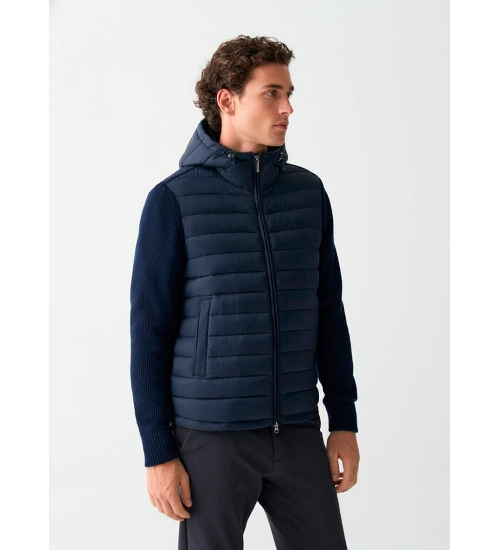 Denne jakke kombinerer en perfekt afbalanceret quiltet forside med indsatser af strik og fleece. Den justerbare hætte, snoren forneden og sidelommerne med lynlås giver et teknisk touch, mens de ribbede ærmer og fleece på ryggen fremhæver den sportslige ånd. Ideel til hverdagsbrug dette efterår.