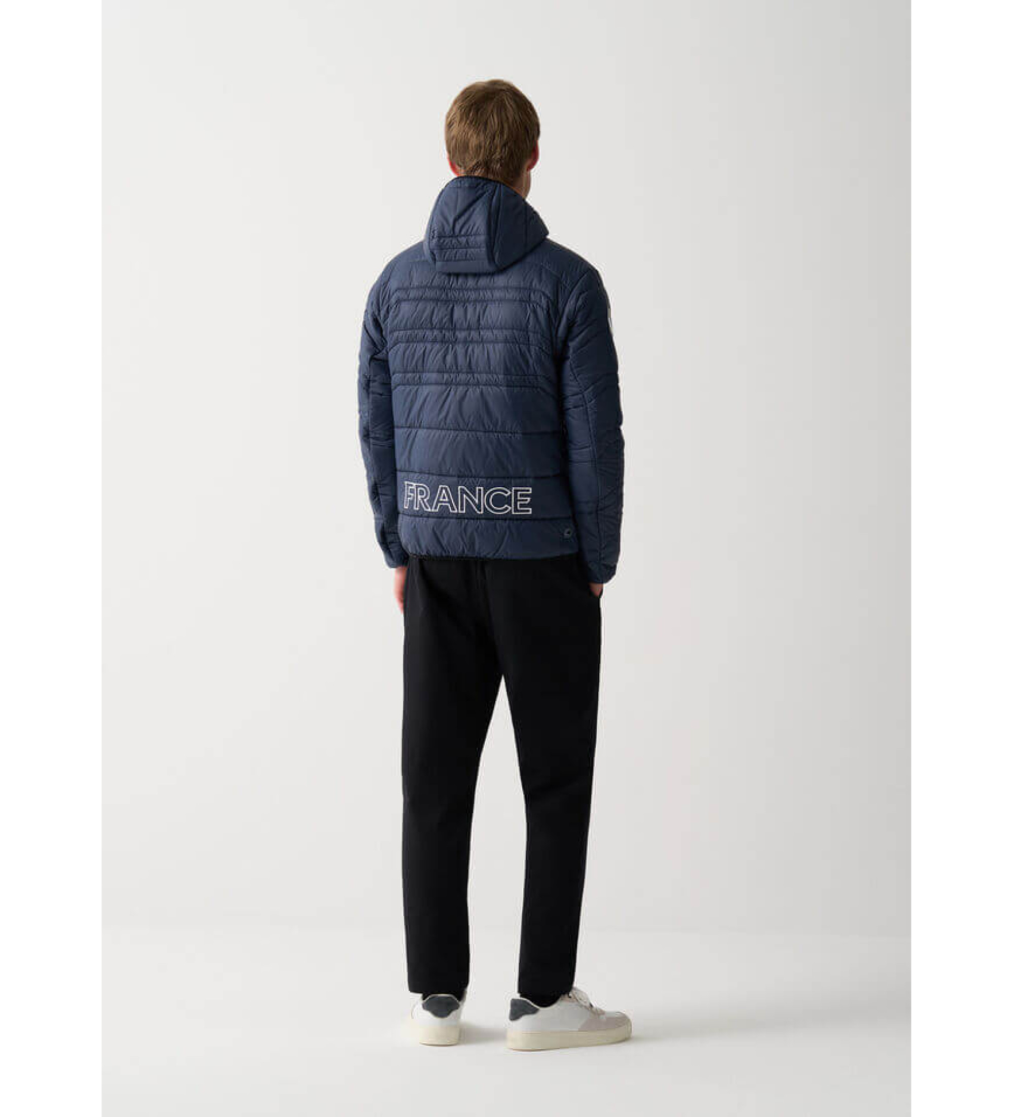 Denne jakke er quiltet i let ripstop-nylon med vandafvisende behandling og er en del af den officielle uniform for det franske skiforbunds atleter i vintersæsonen 2025/2026. Det bløde EVOdown®-vat sikrer varme uden vægt, mens det karakteristiske broderi forbedrer og personliggør designet.
