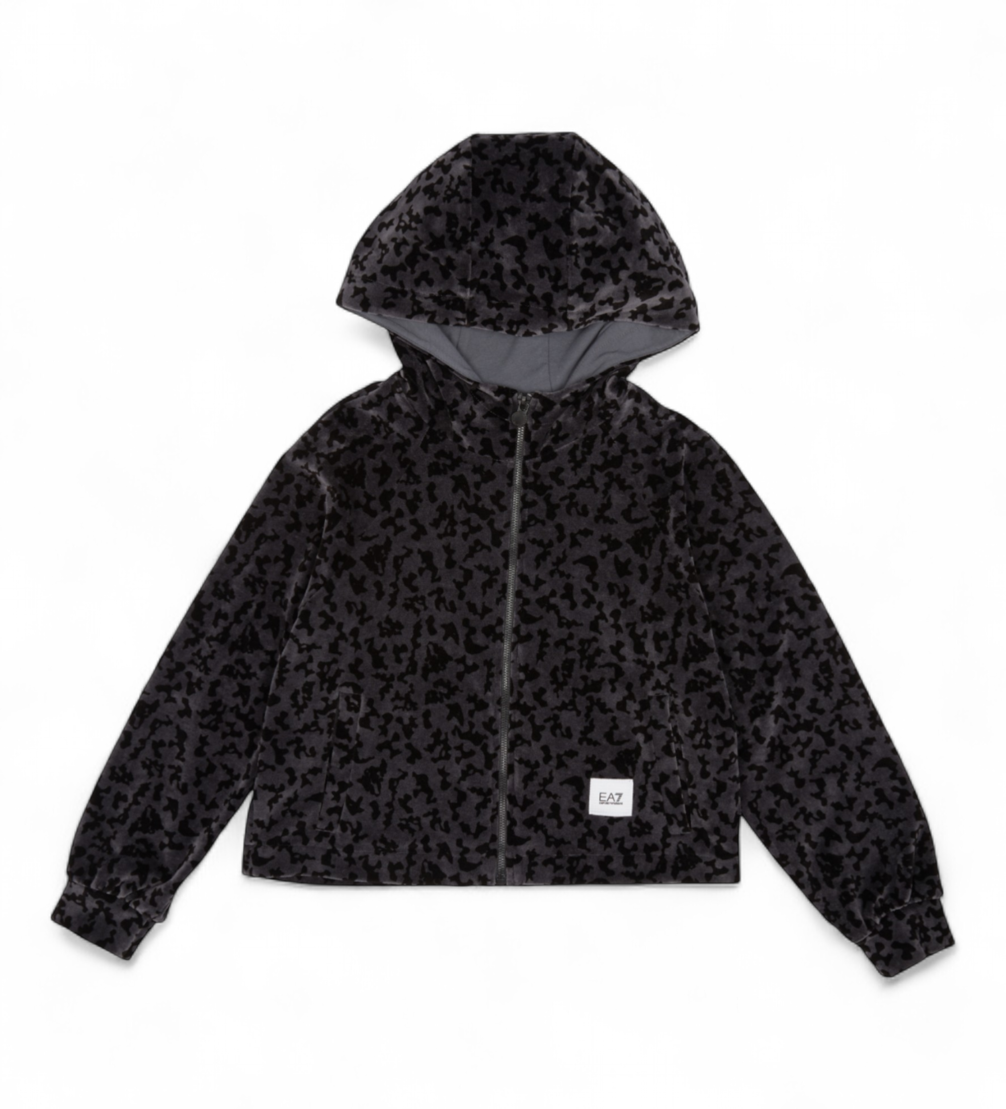 Denne hættetrøje til piger er et ideelt valg til små eventyrere, der ønsker komfort og stil. Det grå design med et karakteristisk print giver et dristigt, moderne touch. Den er lavet af blødt polyesterstof og sikrer varme og holdbarhed. Perfekt til afslappede dage eller udendørs aktiviteter.
