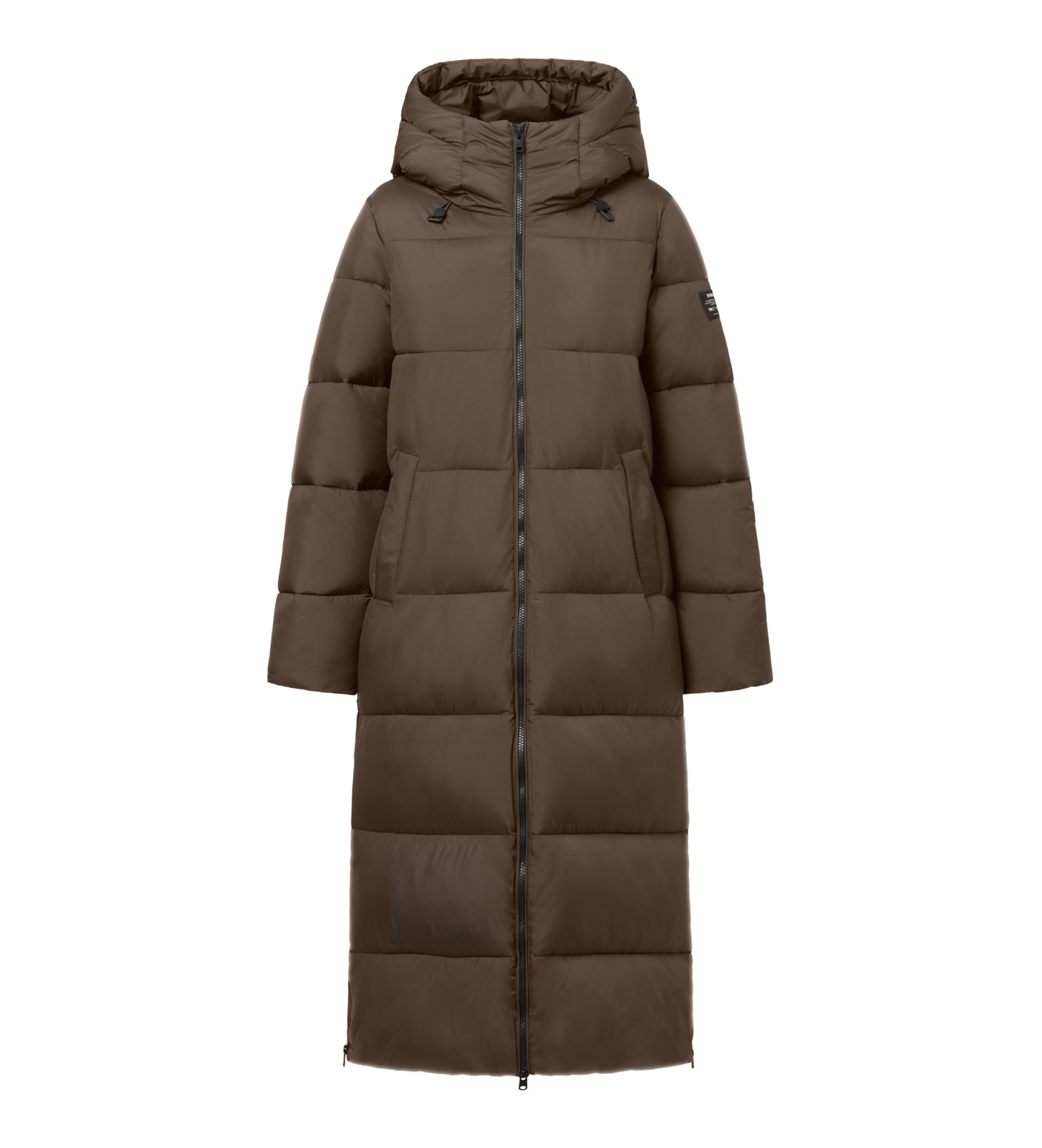 Binaia-frakken er vandafvisende. Den er lavet af 100 % genbrugspolyester fra plastflasker, som vi giver en ny anvendelse ved at omdanne dem til fibre til fremstilling af tekstiler af bedste kvalitet. Den har en tovejslynlås og en hætte, og så er den vandafvisende. Den perfekte frakke til at bekæmpe kulden denne vinter.