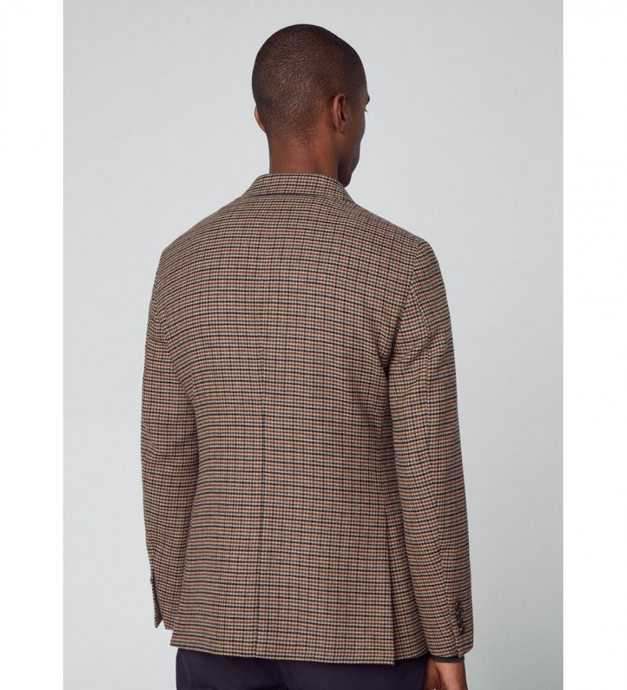 Denne jakke er fremstillet i en enestående uldblanding og er blevet en tidløs klassiker med sit ikoniske houndstooth-mønster i kontrastfarver. Detaljer som det fuldt forede indre og de traditionelle klaplommer giver den det strejf af elegance, du leder efter i et stykke tøj.