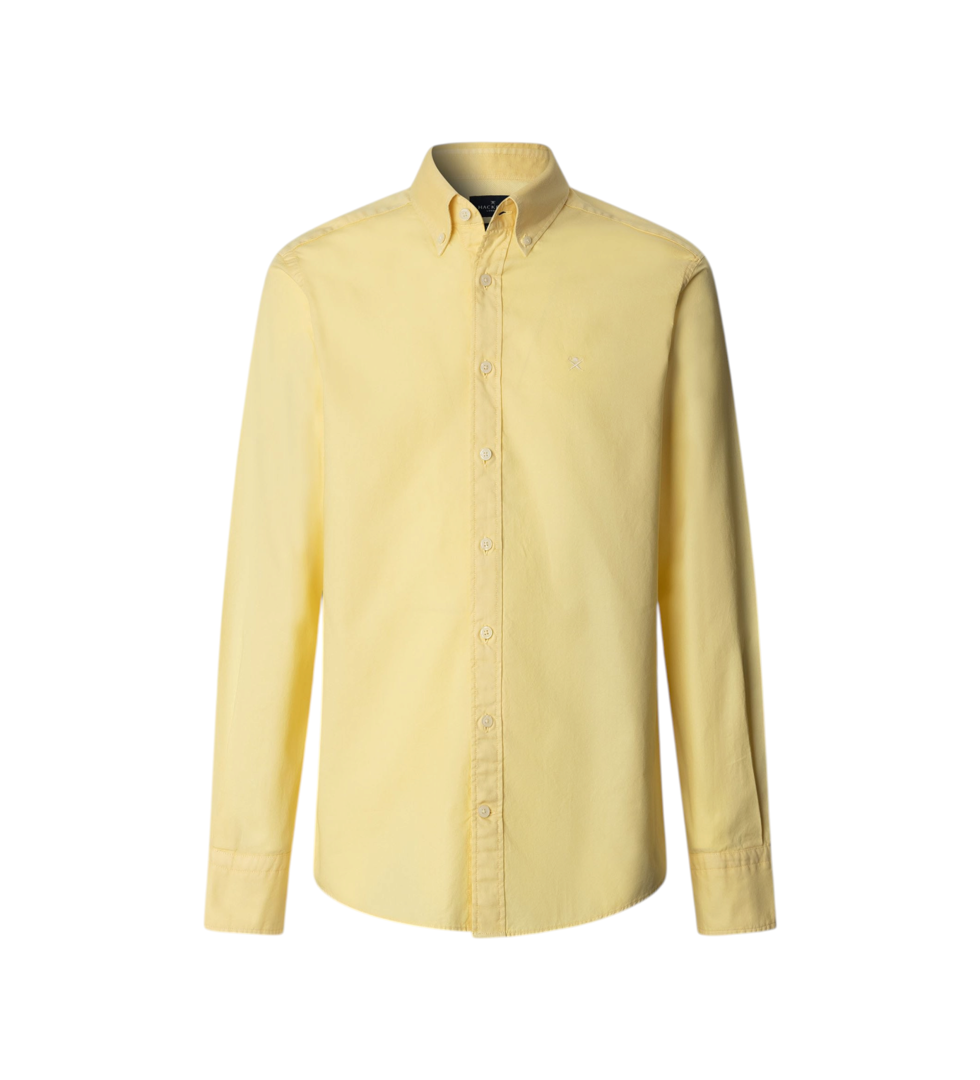 Hackett London Fit Tailored skjorte, fremstillet af 100 % garment dyed bomuld. Et smart, alsidigt design, der kombinerer afslappet styling med karakteristiske branddetaljer.