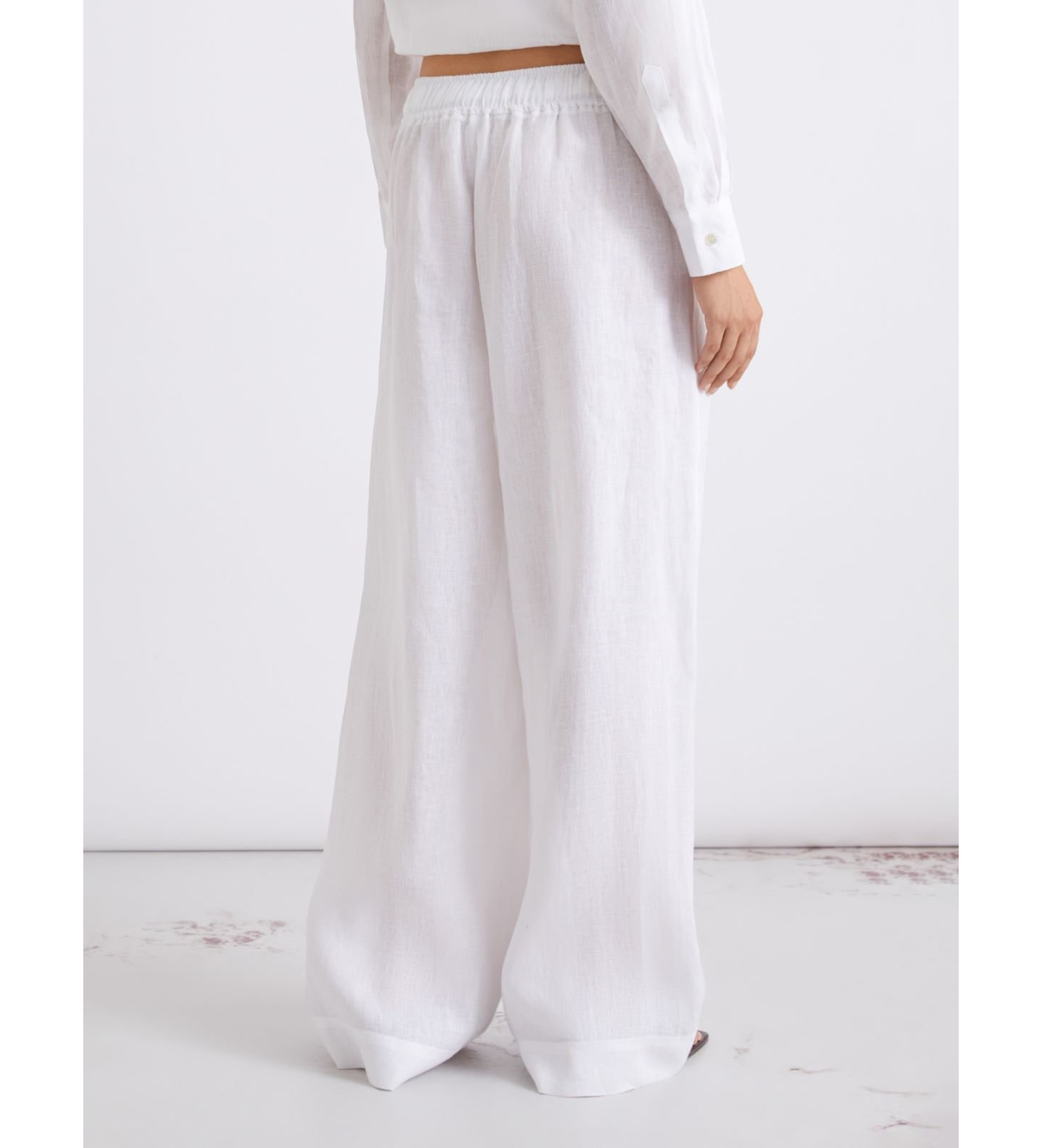 Let, flydende og afslappet pasform. Bukserne i ren hør er din mest behagelige beklædningsgenstand til hverdagsbrug. Med elastik og justerbar løbegang i taljen, så du altid sidder behageligt.