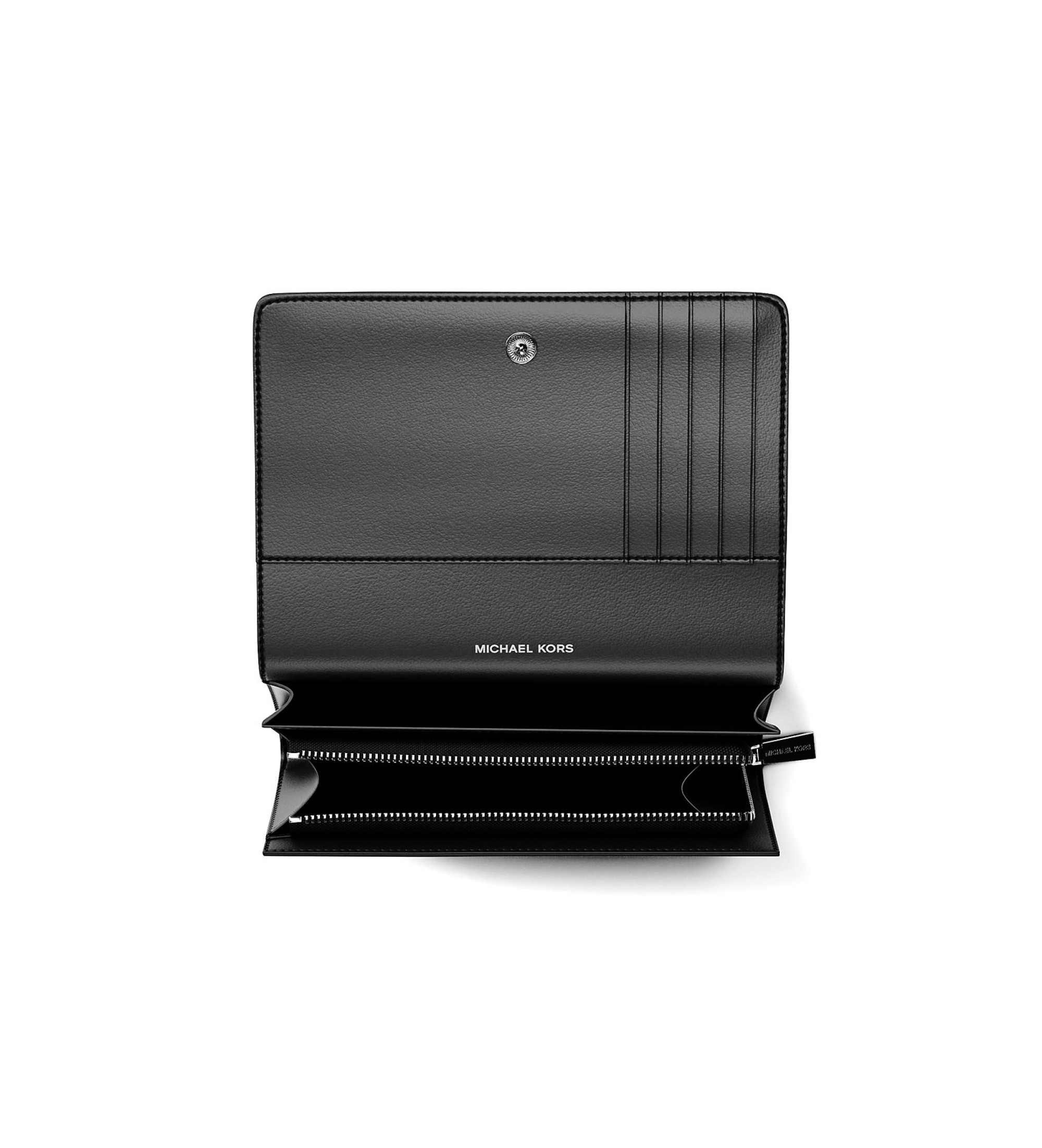 Med flere kortrum og et praktisk møntrum vil denne pung med snaplukning være din trofaste følgesvend sæson efter sæson. Ydersiden i narvlæder holder til hverdagens slid, mens den sofistikerede applikation giver designet et diskret strejf af glans. Den slanke silhuet gør den nem at have med i enhver håndtaske.
