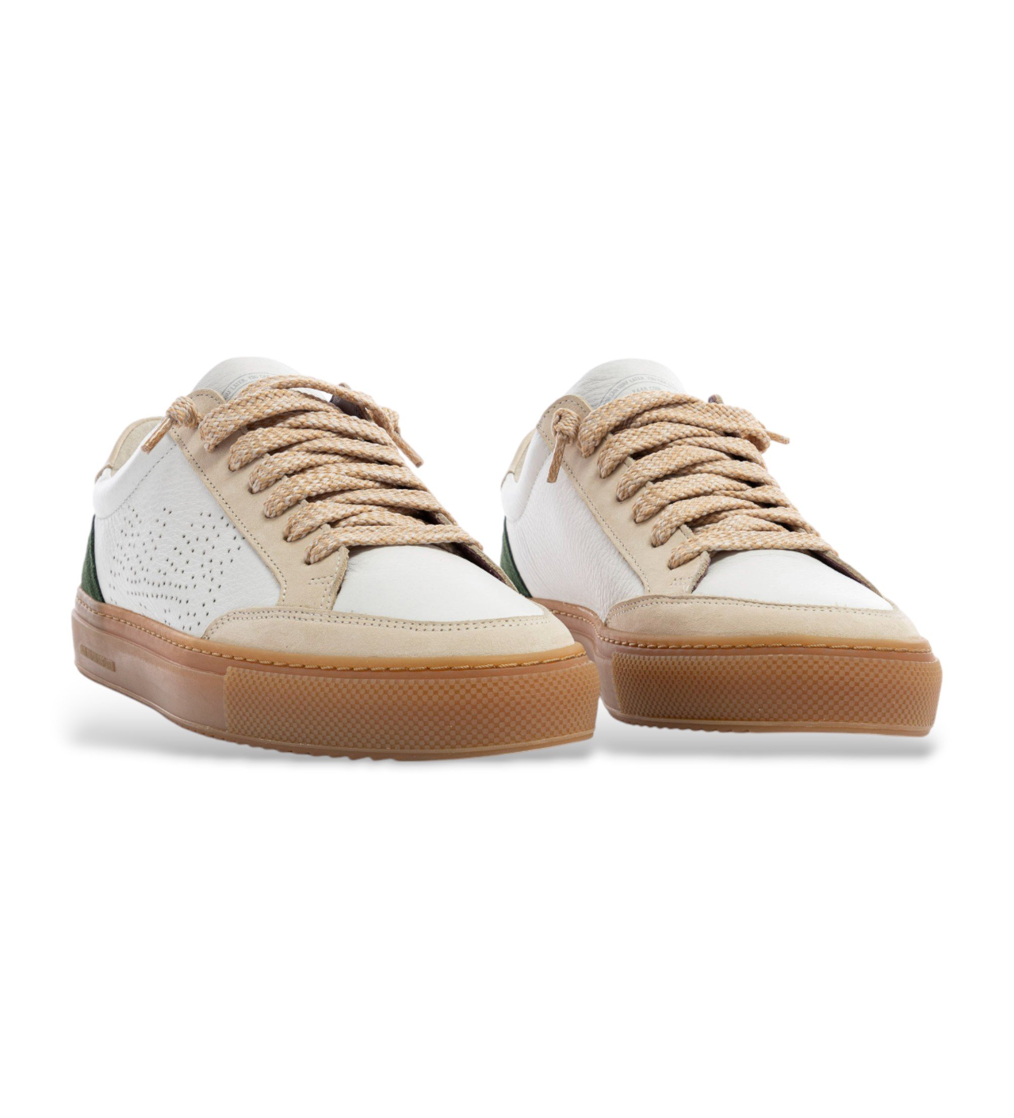 Soho Moondust er foret med hvidt ruskind og suppleret med sølvfarvet læderbeklædning og kile, en tåkappe i perlemorsfarvet metallisk læder og en lysebrun detalje i metallisk læder på hælen. Hvide snørebånd med lilla hardware og vores signatur P448 håndslidte, mørkegrå mønstrede gummisåler fuldender looket.