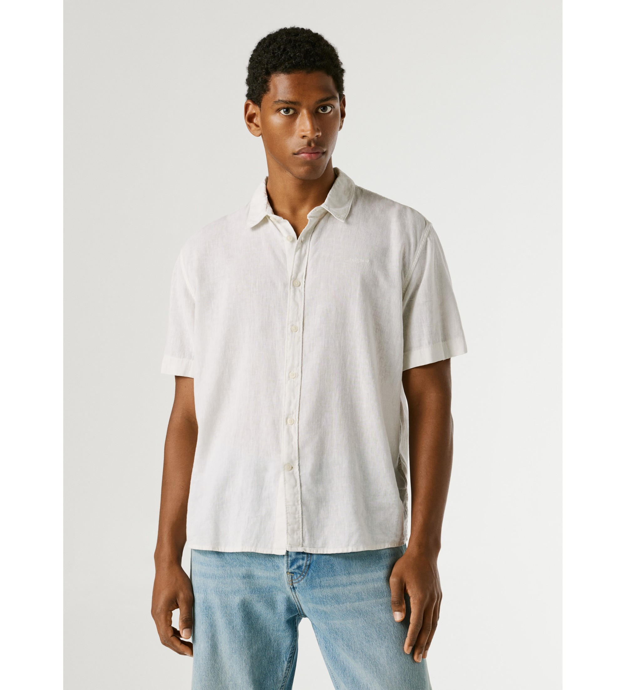 Kortærmet herreskjorte med afslappet krave, fremstillet af hør og bomuld. Det minimalistiske design i hvid har Pepe Jeans-logoet broderet på brystet i en tone, der matcher hovedstoffet. Et stykke tøj med en moderne og naturlig fornemmelse, designet til et afslappet look med en pæn finish. Overvejende farve: hvid. Hovedmateriale: hør.