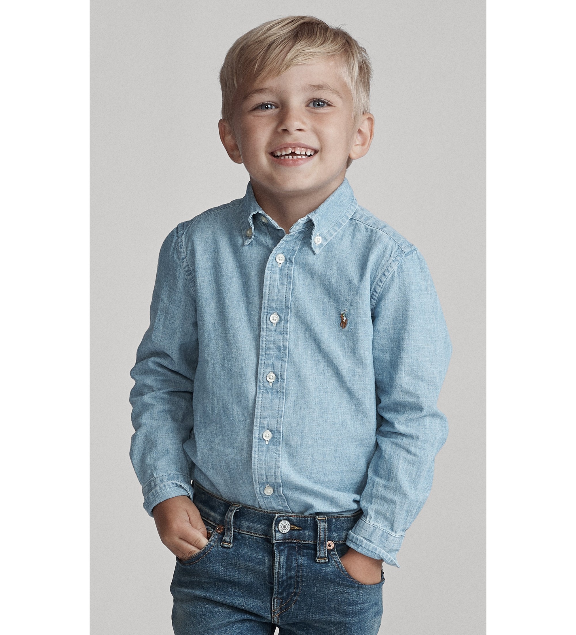 Denne klassiske button-down-skjorte er fremstillet af let bomulds-chambray og har husets karakteristiske hestebroderi.