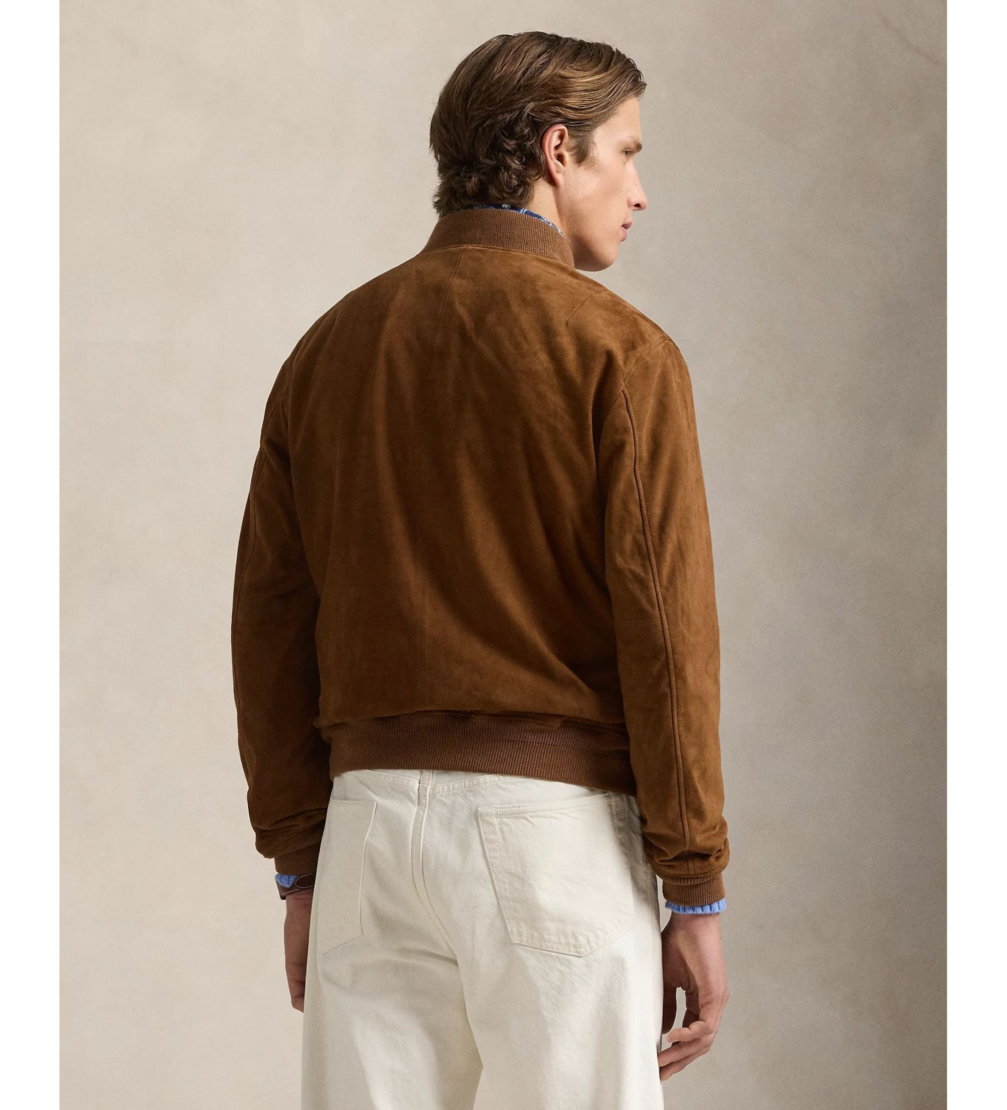 Denne Polo-version af den klassiske bomberjakke er lavet af fløjlsblødt ruskind og dekoreret med en tonal version af mærkets broderede signaturhest.