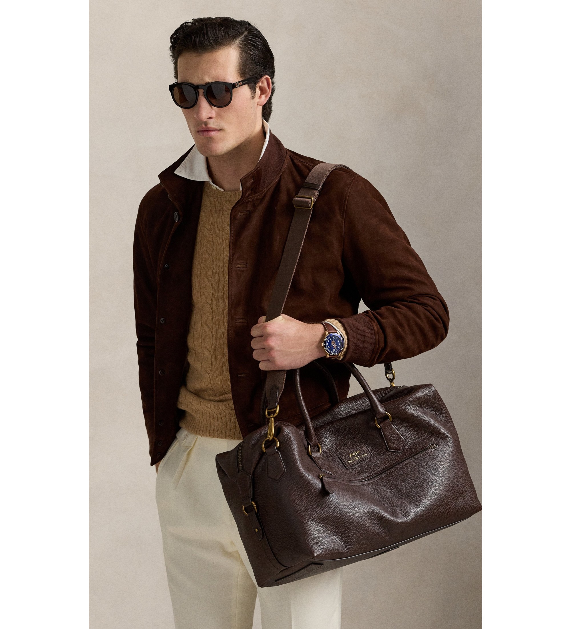 Denne rejsetaske i kernelæder er designet med flere rum og lommer, så du kan holde styr på dine vigtigste ting. Den strømlinede silhuet er afsluttet med signaturindgraveret metalhardware.