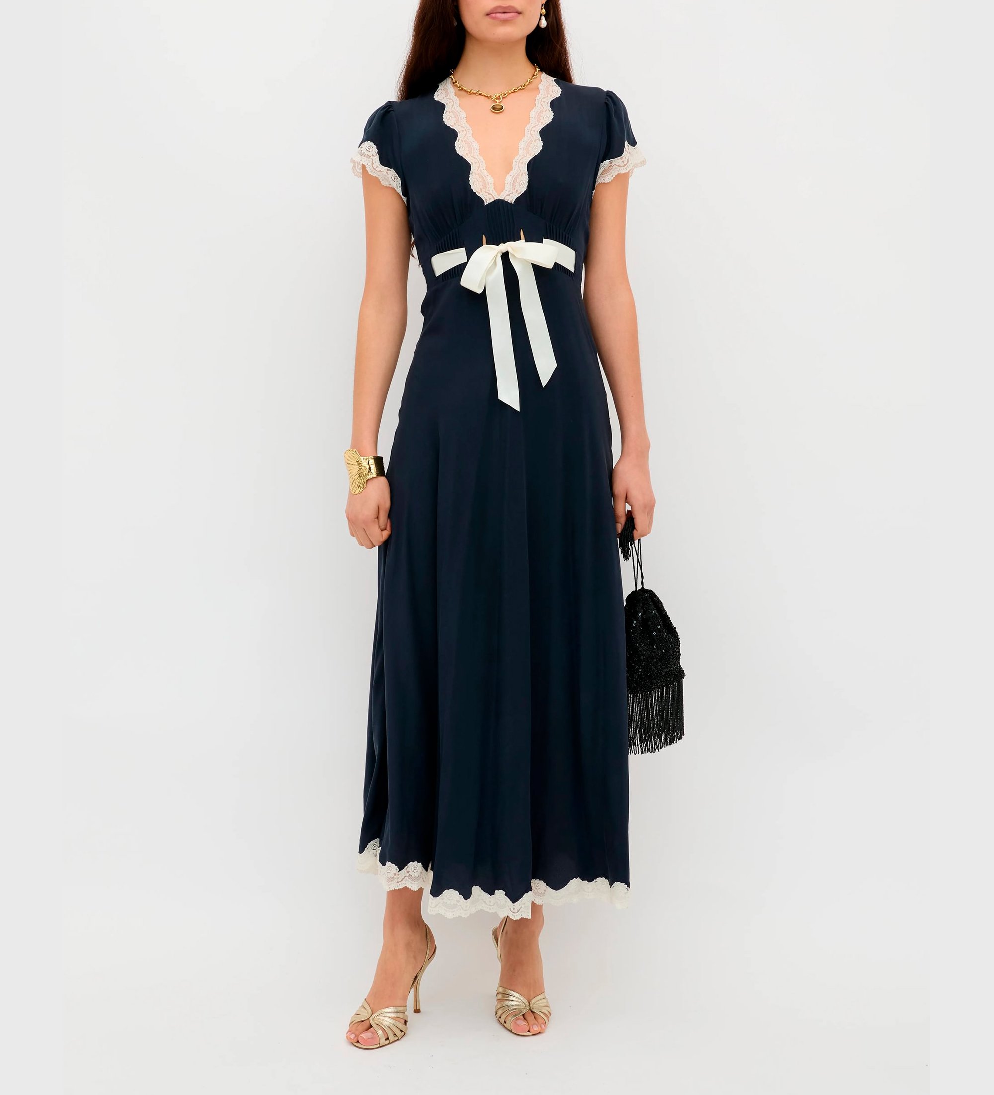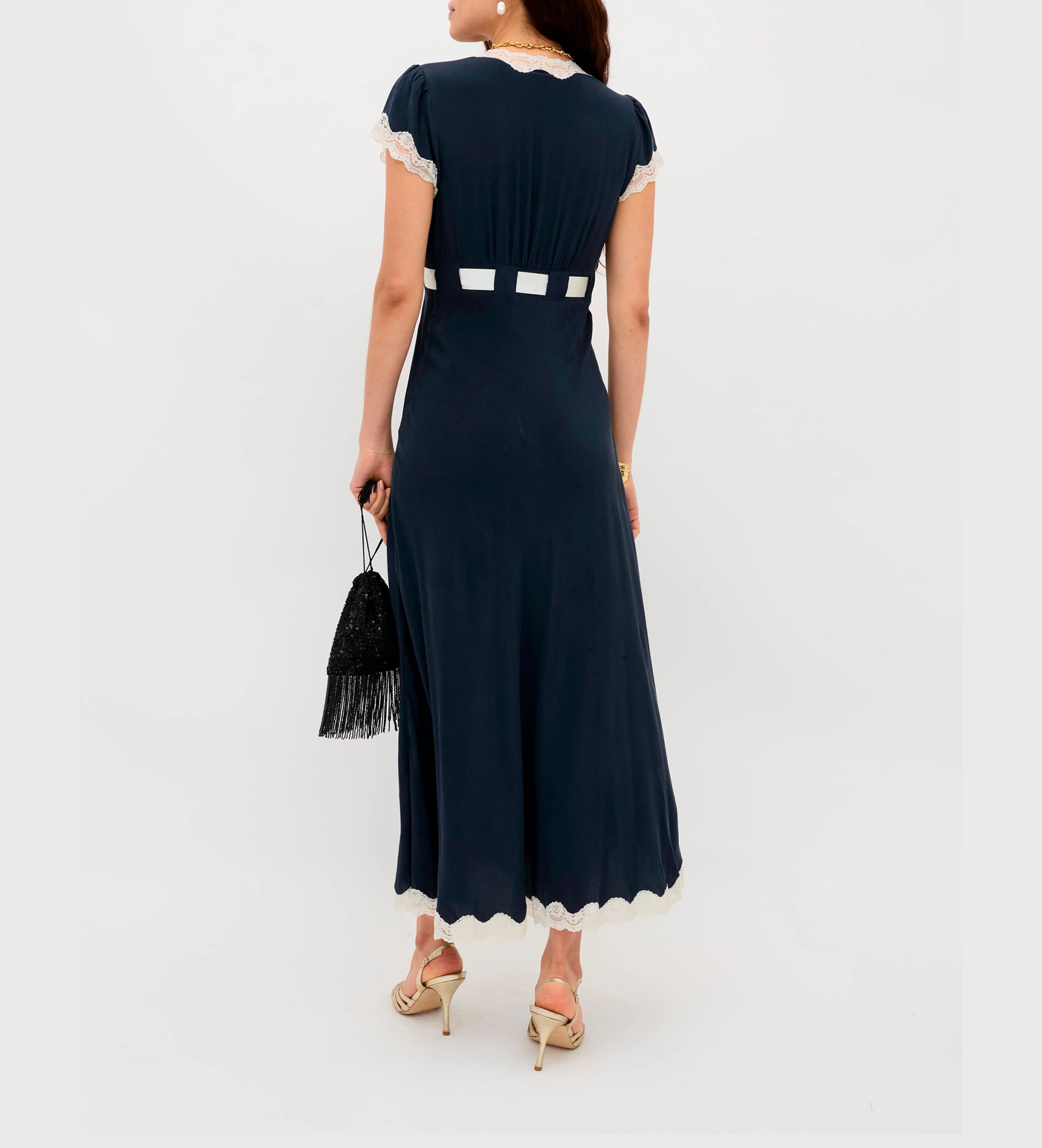 Formen på denne Marlice-kjole ligner vores Clarice-design: den er så alsidig og nem at have på. Vi har tilføjet en satinbue i taljen og smukke blondekanter.