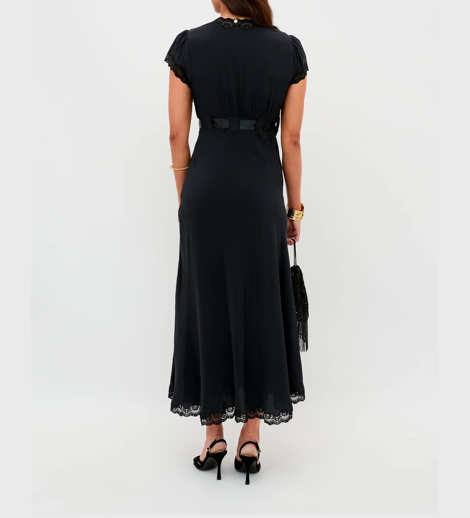 Formen på denne Marlice-kjole ligner vores Clarice-design: den er så alsidig og nem at have på. Vi har tilføjet en satinbue i taljen og smukke blondekanter.