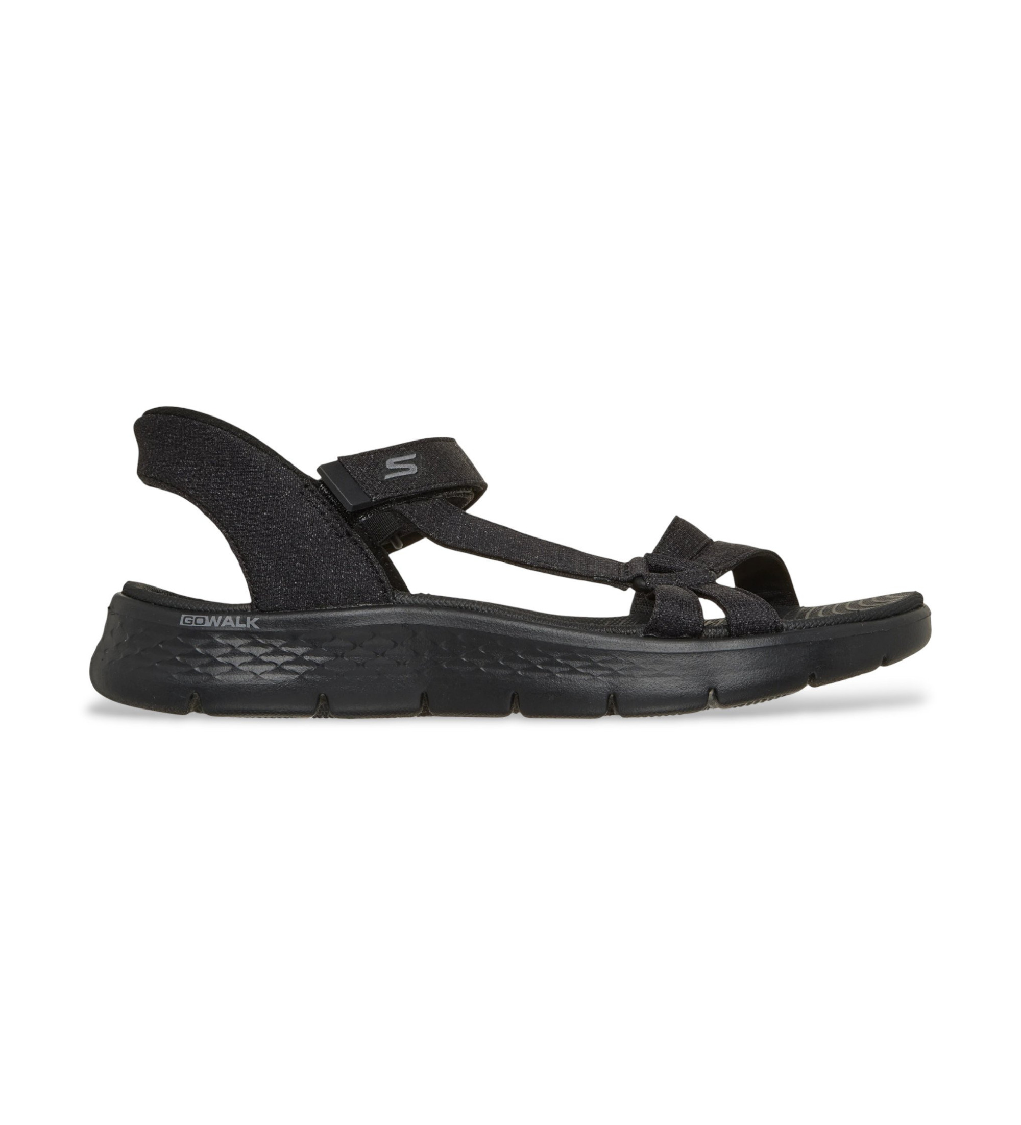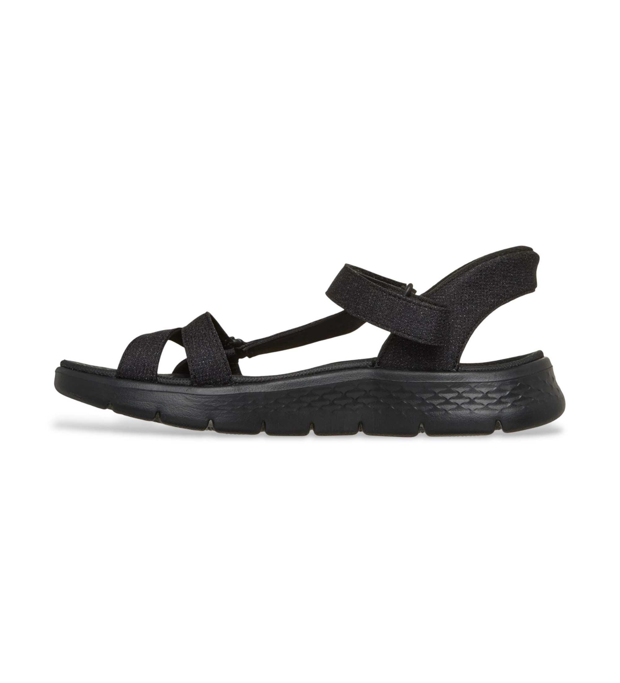 Kombiner nemt dine nye yndlings Skechers Hands Free Slip-ins®: GO WALK Flex™ Sandal - Illuminate. Disse sporty sandaler med stropper er designet med vores Heel Pillow™-system og har en vævet overdel med justerbar vristrem, en formstøbt Goga Mat®-fodseng, let ULTRA GO®-støddæmpning og Skechers Slip-ins®-hæl til håndfrit fodtøj.