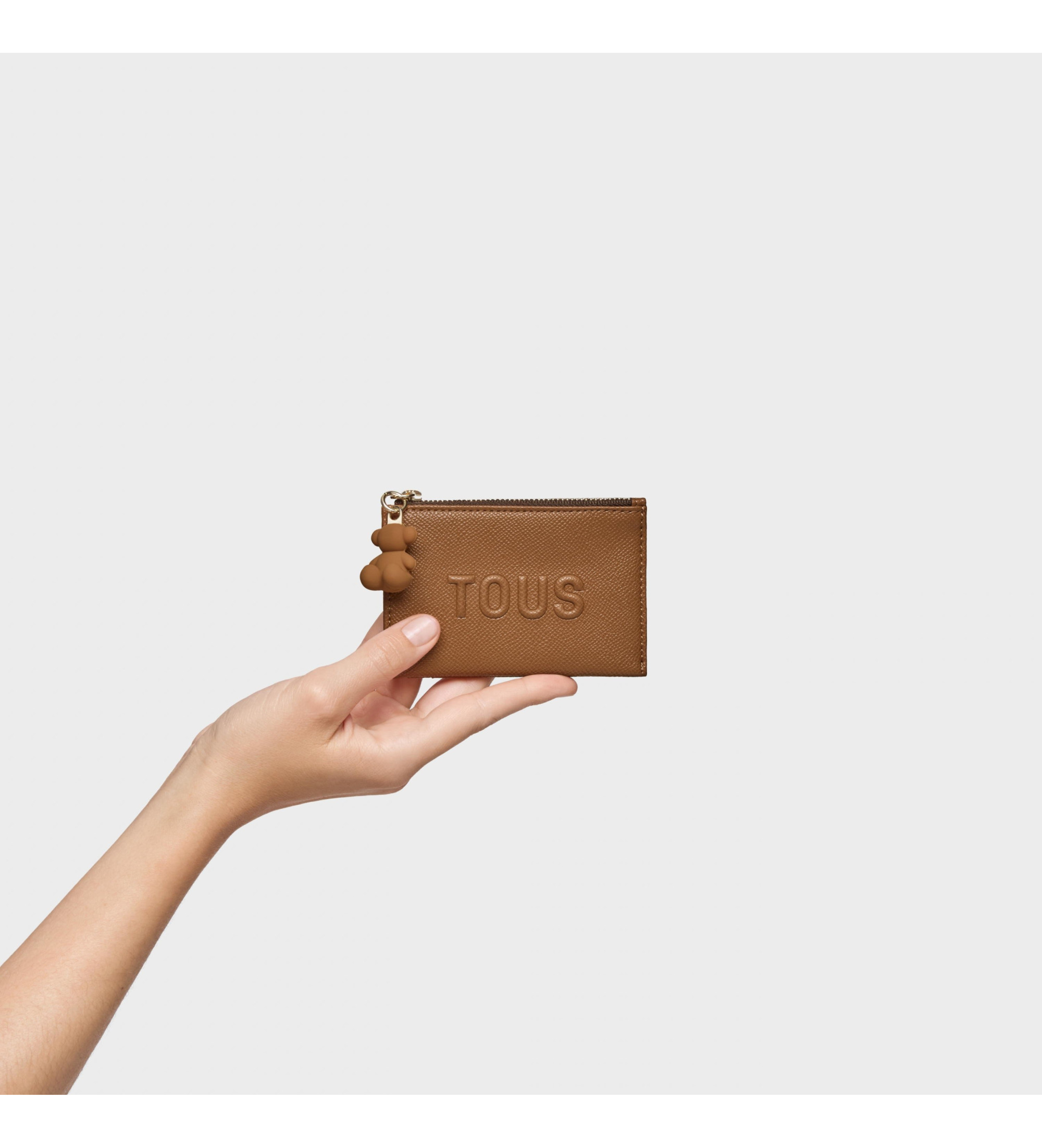 TOUS Brenda kortholder i polyuretan i camelfarve. Særligt rum til mønter med lynlåslukning. På bagsiden er der tre kortholdere, hvoraf den ene er gennemsigtig. Mål (højde x bredde x dybde): 8,5 x 11,5 x 1 cm.