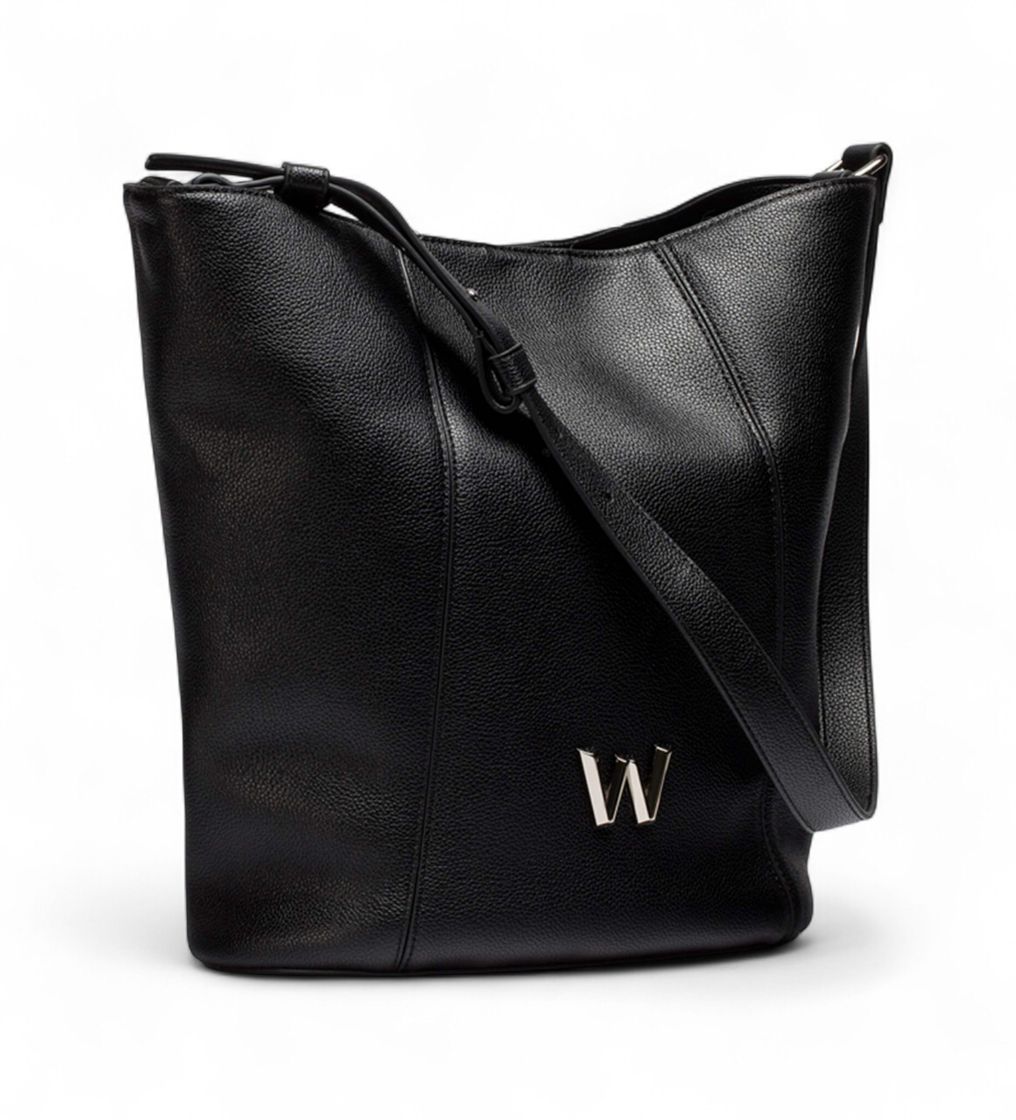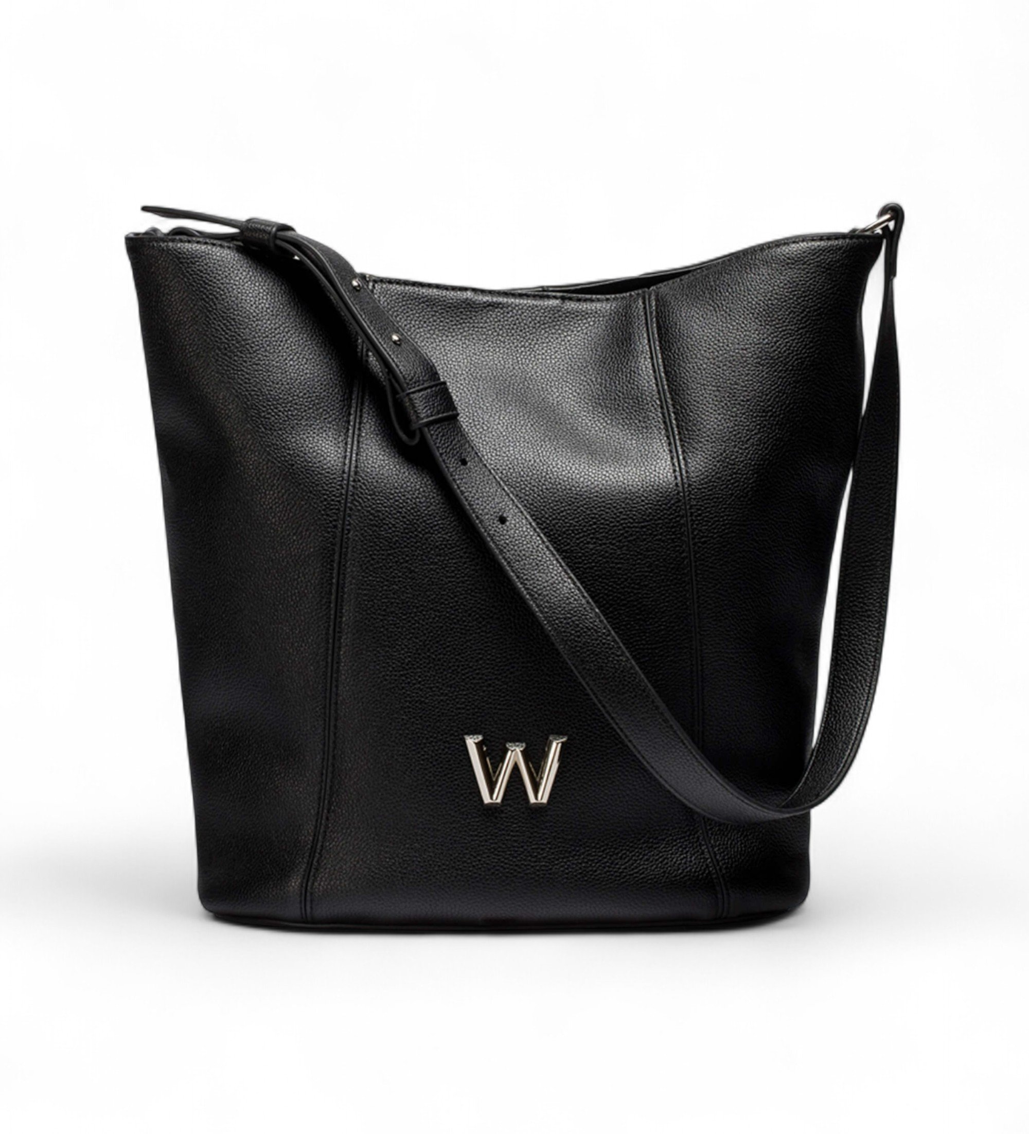 Tasken er fremstillet af øko-læder med tekstilfor og kombinerer holdbarhed med en glat, elegant finish. Sølvfarvede metaldetaljer giver et moderne og sofistikeret touch, mens låsen sørger for, at den altid er sikker.
