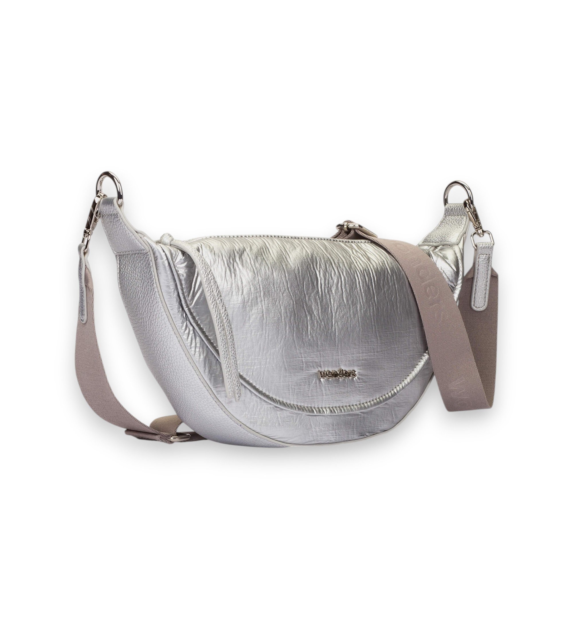 Muse-skuldertaske i tekstil til kvinder, et let og funktionelt design med bløde linjer og afbalancerede proportioner. Den er perfekt til hverdagsbrug og kombinerer funktionalitet og stil i et behageligt og alsidigt format.