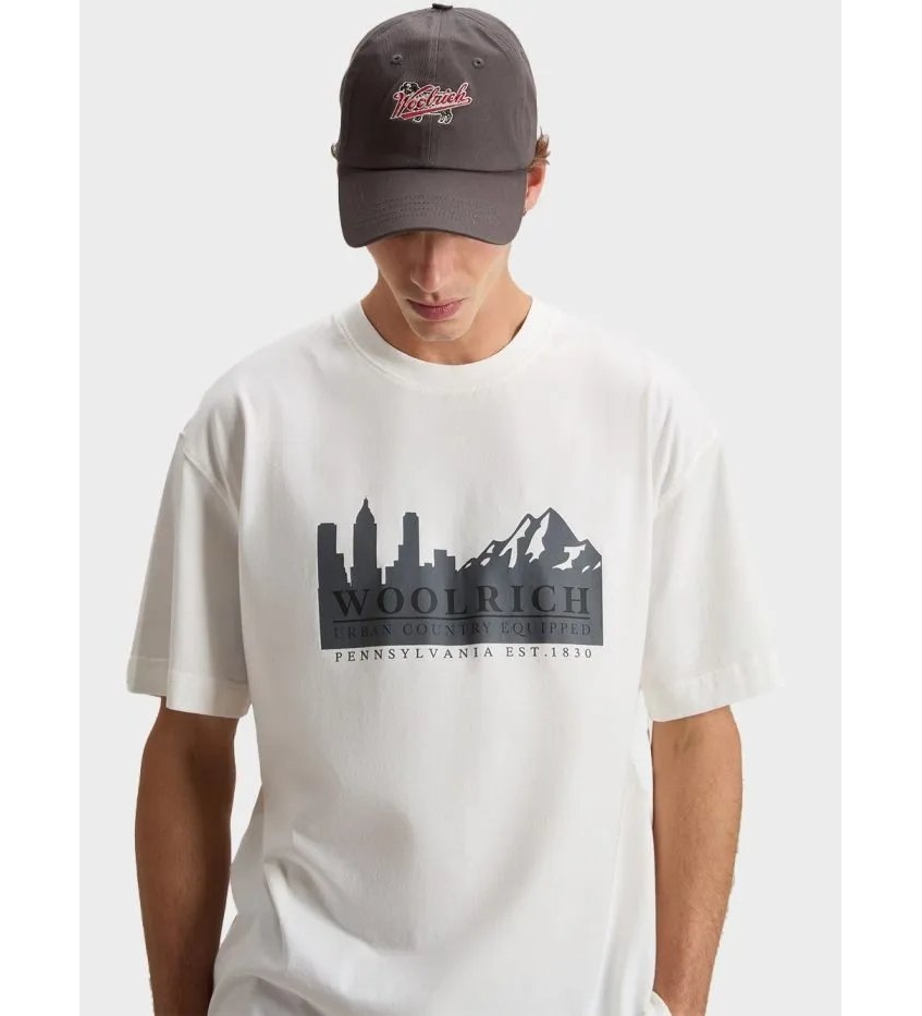 En enkel beklædningsgenstand, der spiller på kontrasten mellem minimalisme og identitet. Denne T-shirt i ren økologisk bomuldsjersey har en naturlig, behagelig pasform, som er ideel til jeans eller afslappede bukser. Logoet på brystet er underspillet, mens Woolrich-printet på ryggen er mere markant og giver designet karakter.
