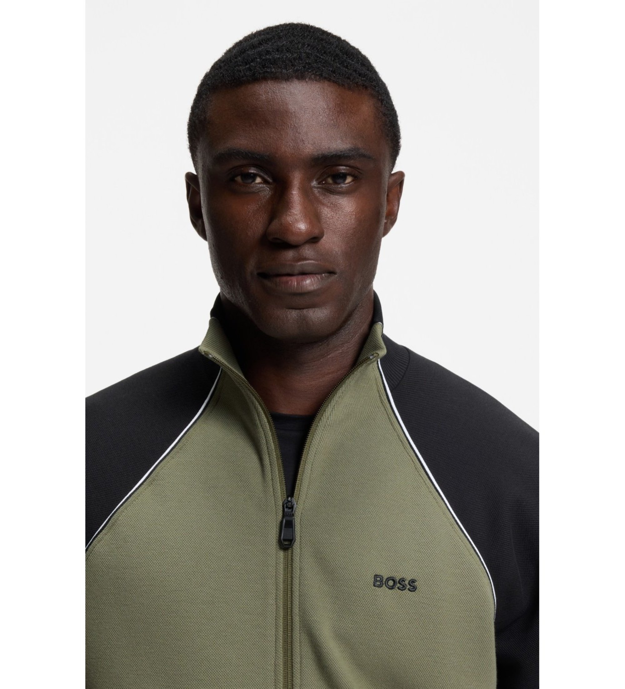 BOSS Baumwollsweatshirt mit grüner Kontrastpaspel