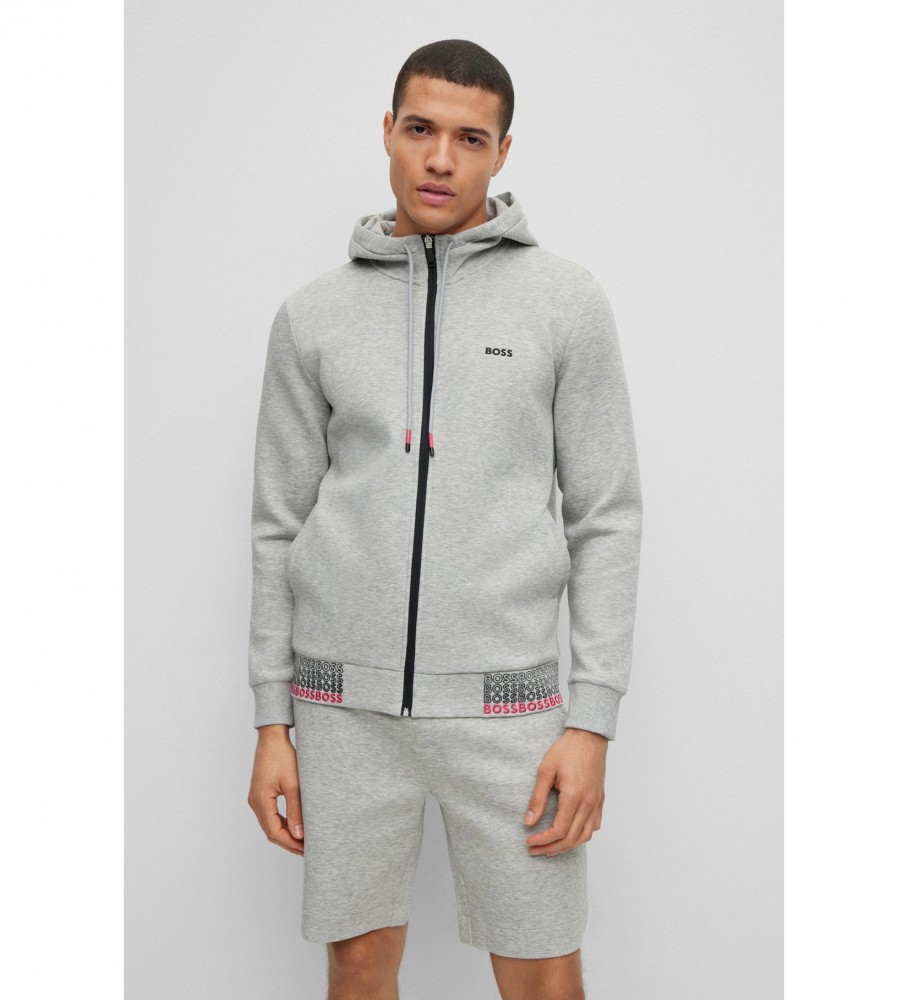 BOSS Menswear Sweatshirt mit Kapuze und Reißverschluss in normaler Passform aus Stretchmaterial mit gesticktem, mehrfarbigem Markendetail am Saum.