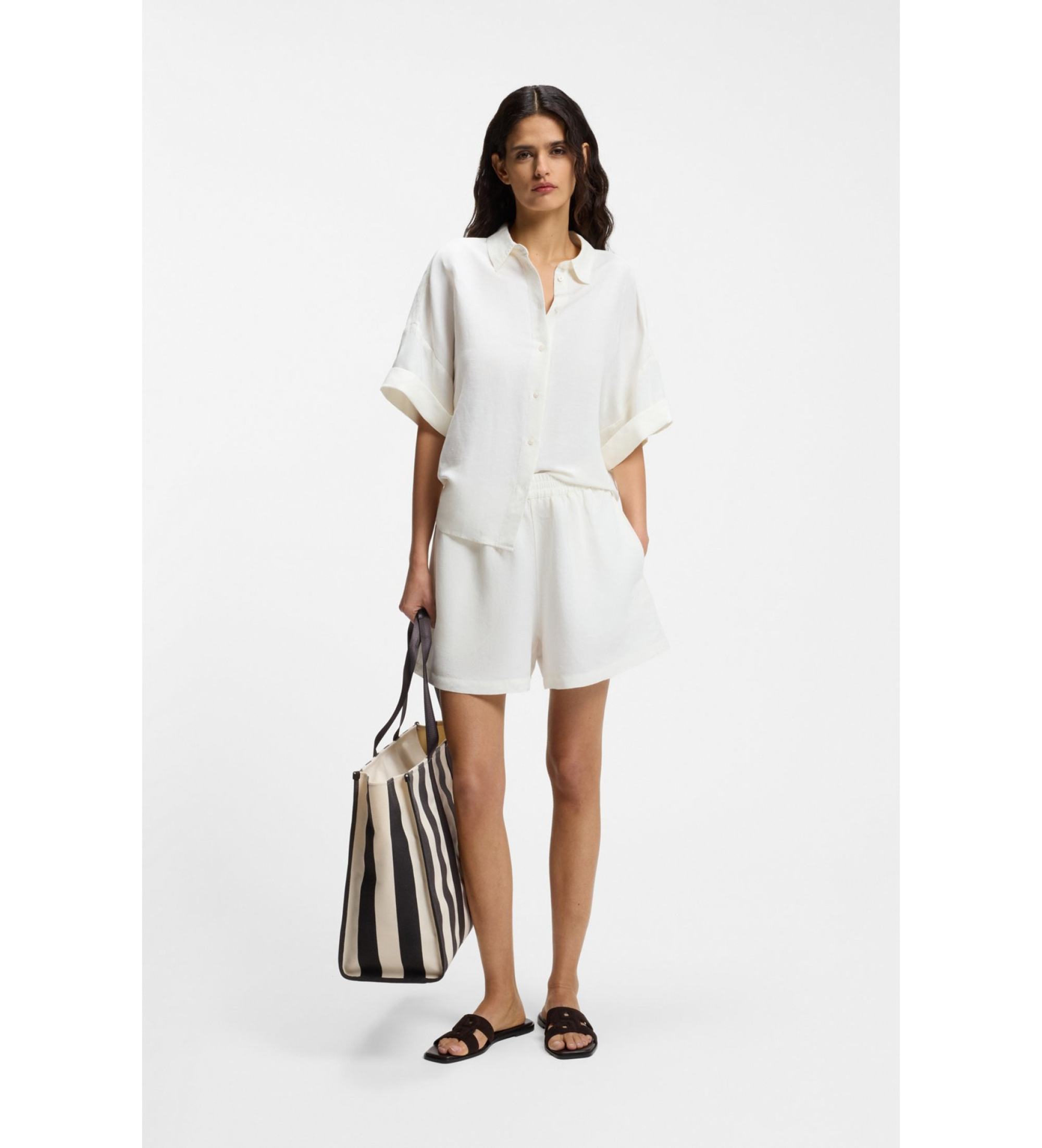 Diese entspannt geschnittenen Shorts mit weitem Bein von BOSS Womenswear sind ein ideales Kleidungsstück für den Sommer. Hergestellt aus weichem Leinen. Gesticktes Logo-Detail.