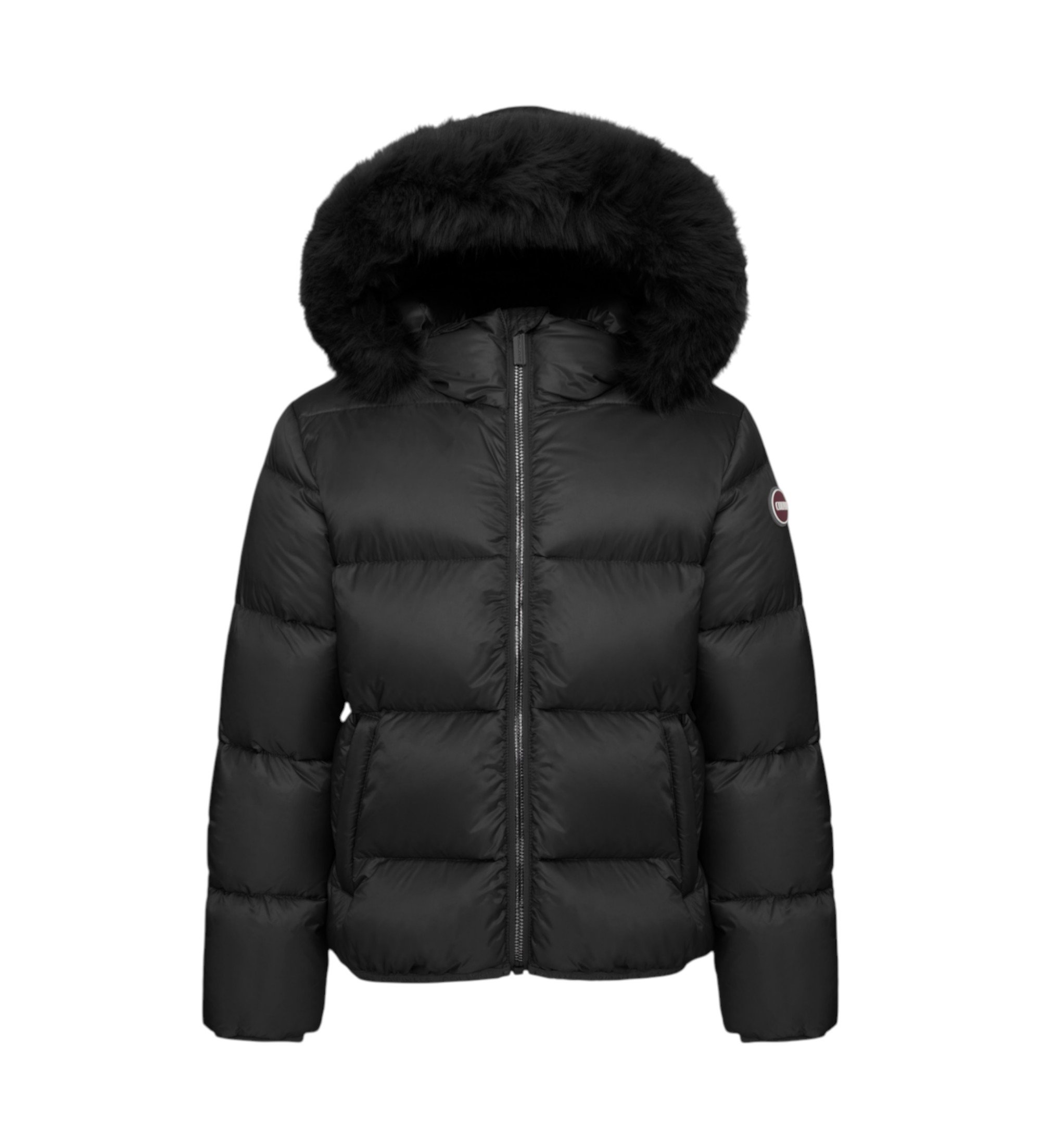 Die halbglänzende Oberfläche und die Kapuze aus Kunstfell bringen den Charakter und den Stil jedes Mädchens voll zum Ausdruck. Diese Daunenjacke bietet Wärme und Schutz vor der Winterkälte, mit einem Hauch von Glamour. Ein Kleidungsstück, das Komfort und Stil vereint.