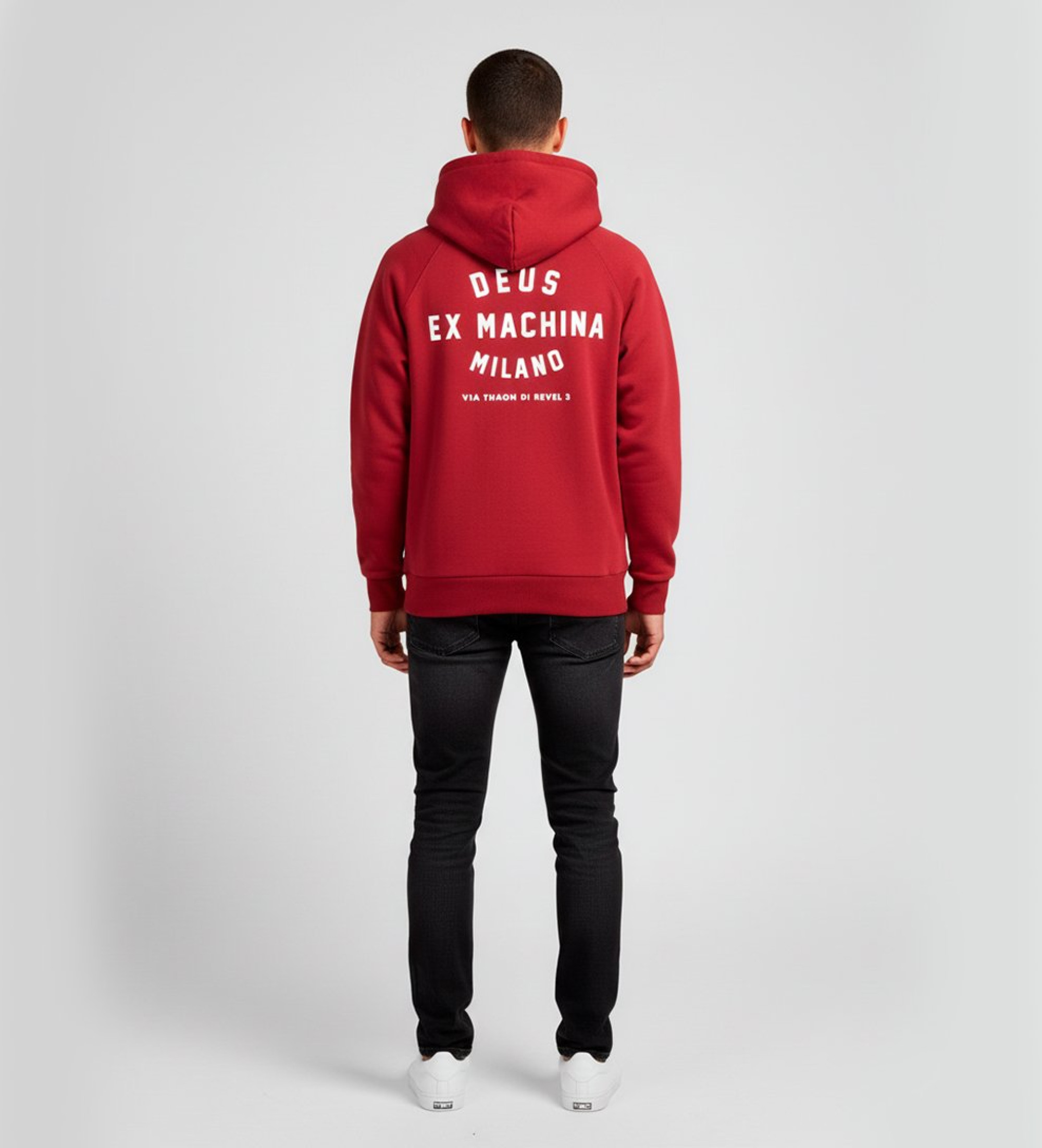 Sweatshirt mit Raglan-Kapuze, normaler Passform und klassischem, direktionalem Druck. Gebürsteter Bio-Baumwoll-Fleece-Stoff 380 g