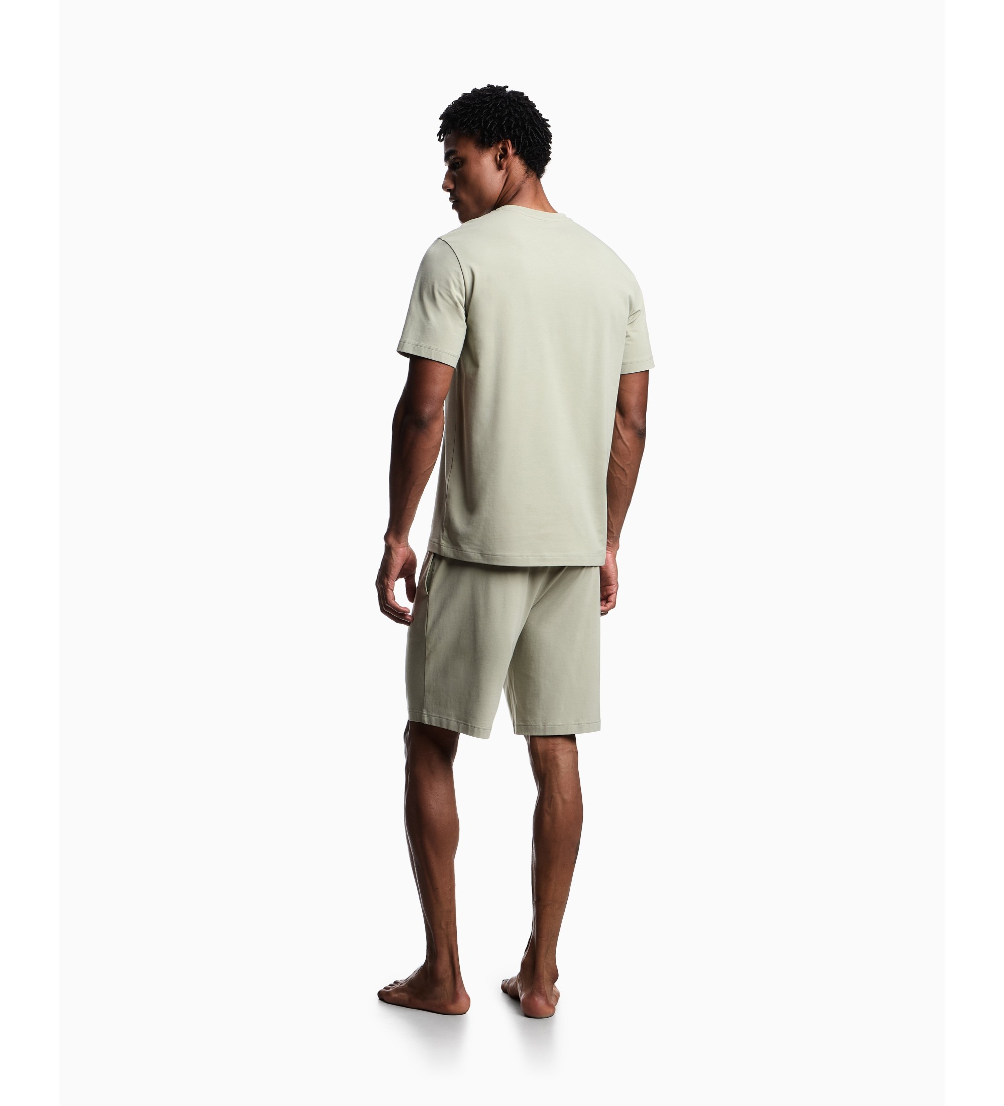 Zusammensetzung: T-Shirt 95% Baumwolle, 5% Spandex | Shorts 95% Baumwolle, 5% Spandex | Bund 58% Polyamid, 34% Polyester, 8% Spandex | Taschen 95% Baumwolle, 5% Spandex