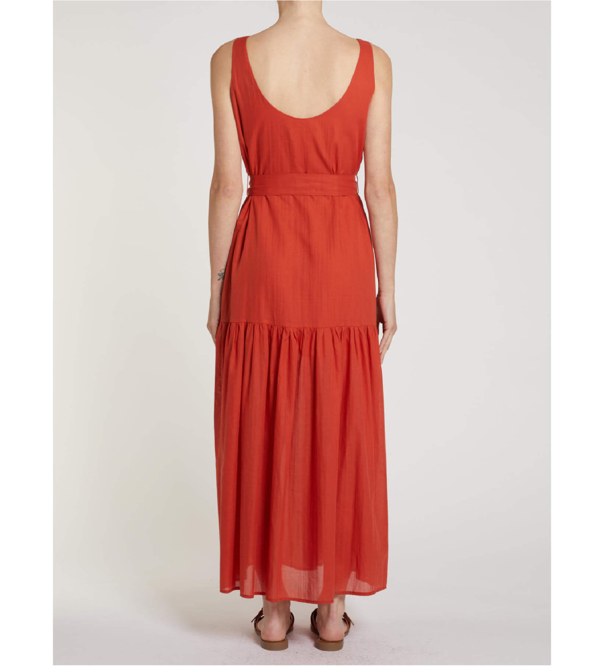 Trägerloses Kleid aus Baumwoll-Voile, das sich durch Leichtigkeit und Fluidität auszeichnet. Gerade und entspannt geschnitten, mit einer großen Rüsche am Saum, die für Bewegung und Weiblichkeit sorgt, wird es mit einem einfachen koordinierten Gürtelknoten verwandelt, um die Silhouette nach Belieben zu definieren. Ein komplettes Sommerkleidungsstück, vielseitig und charaktervoll.