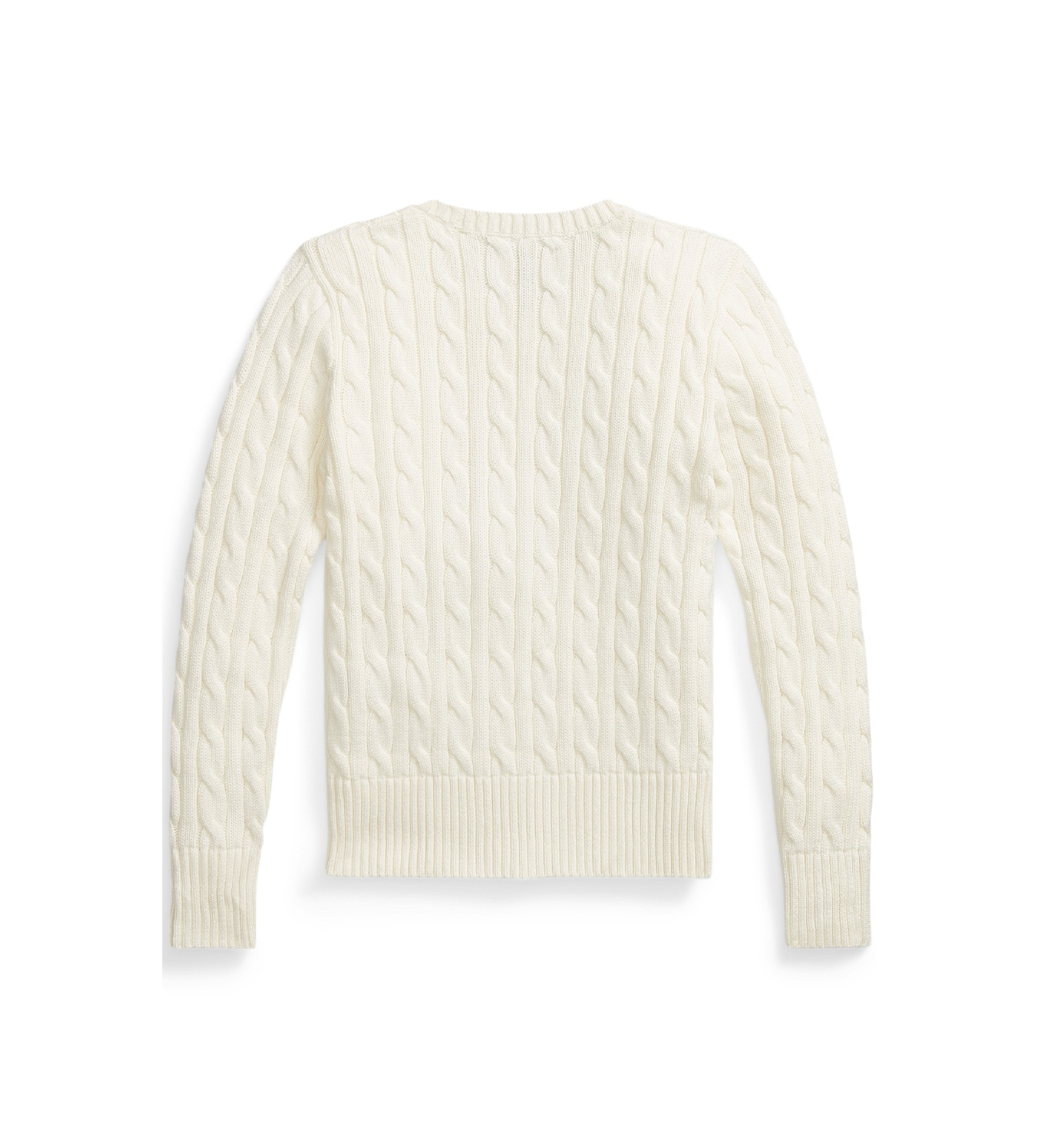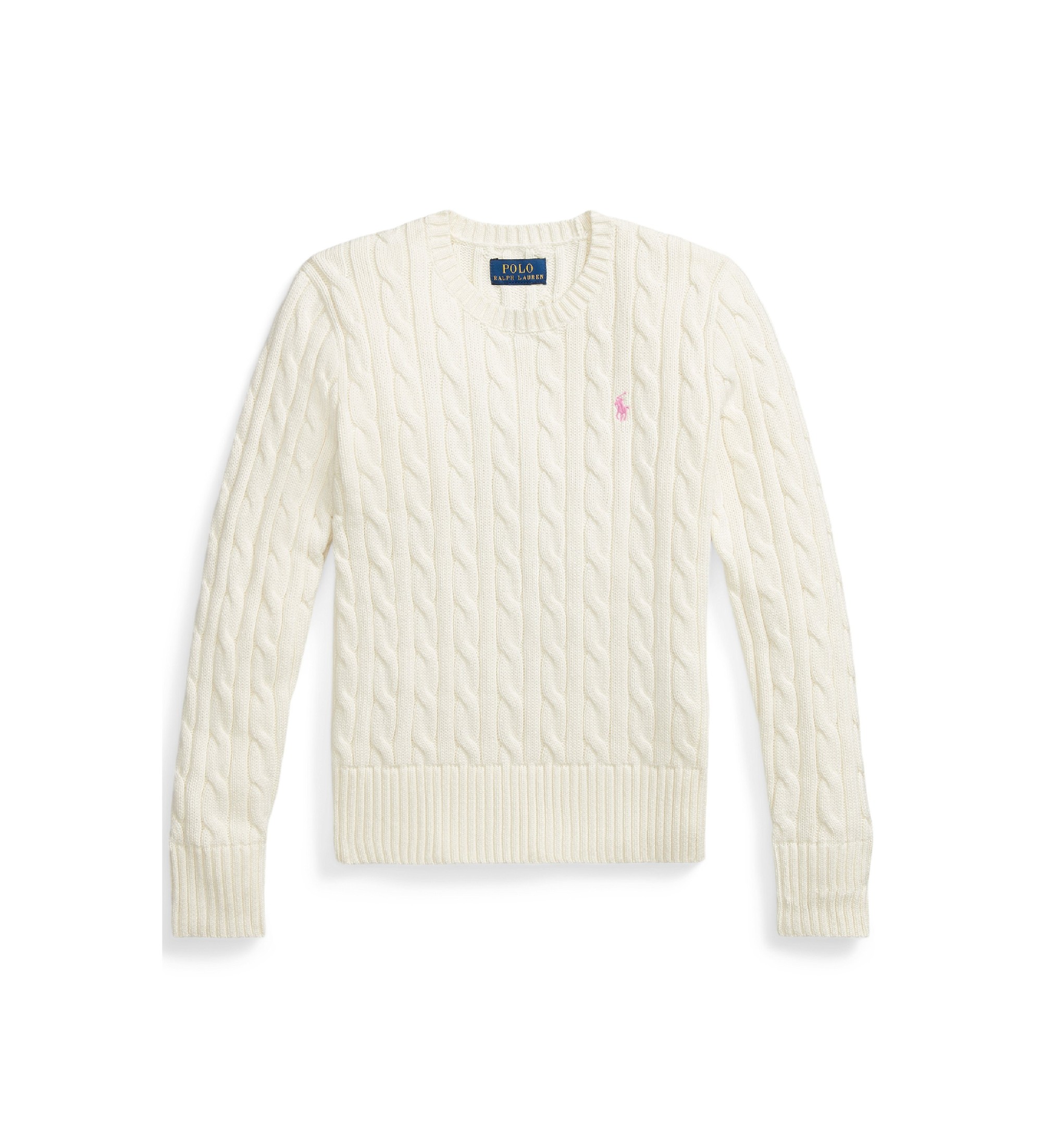 Dieser Pullover mit Rundhalsausschnitt ist aus mittelschwerer gekämmter Baumwolle im Zopfmuster gestrickt und mit unserem charakteristischen gestickten Pony versehen.