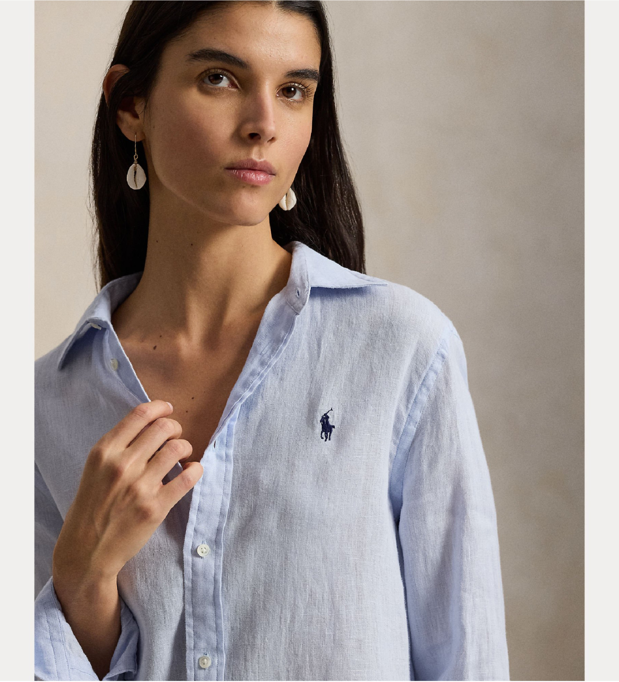 Dieses gerade geschnittene Hemd ist aus leichtem Leinen gewebt und mit Muschelknöpfen und unserem charakteristischen, sorgfältig gestickten Pony versehen.
