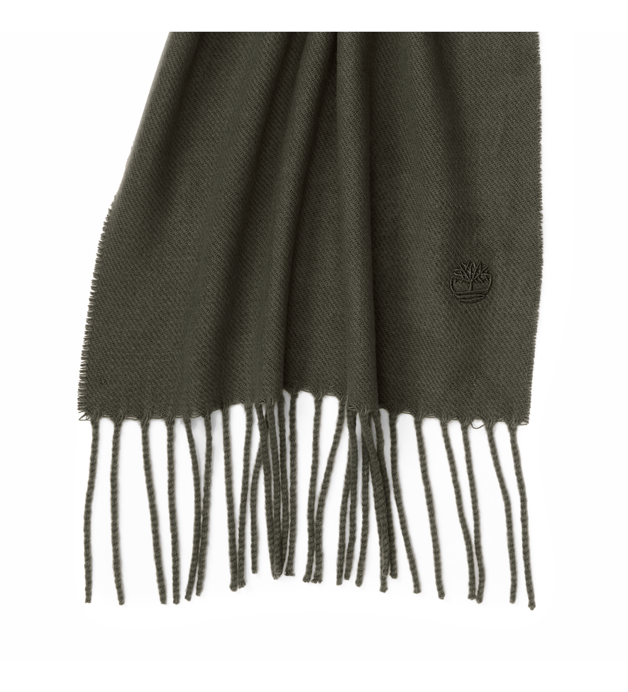 Dieser unifarbene gewebte Schal ist ein lässiger Begleiter. Der Schal aus 100 % Acryl hat einen unbearbeiteten Rand mit gedrehten Fransen und ein gesticktes Timberland-Baumlogo.