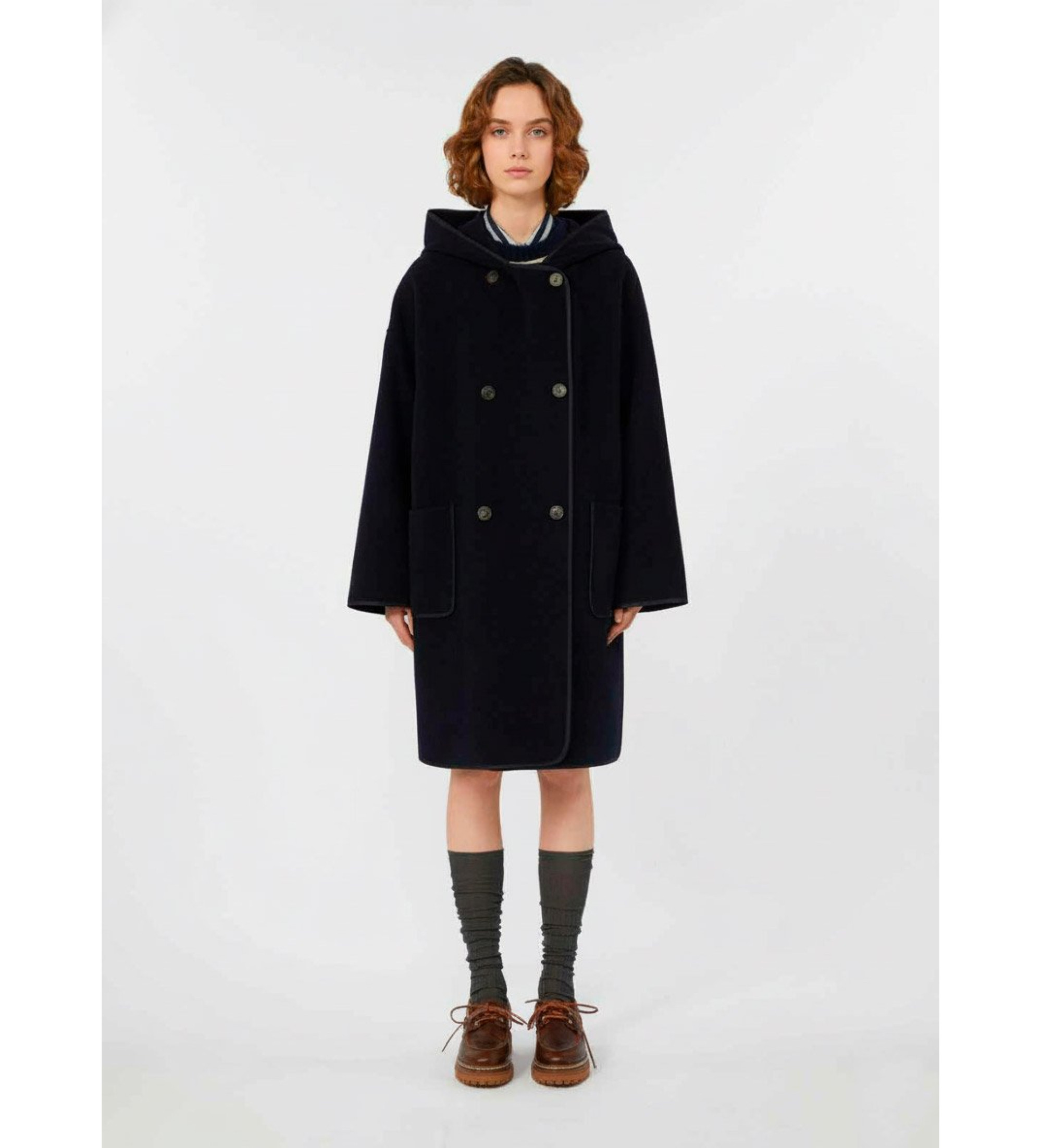 Midi-Crossover-Mantel mit Kapuze, inspiriert von einem Trenchcoat.