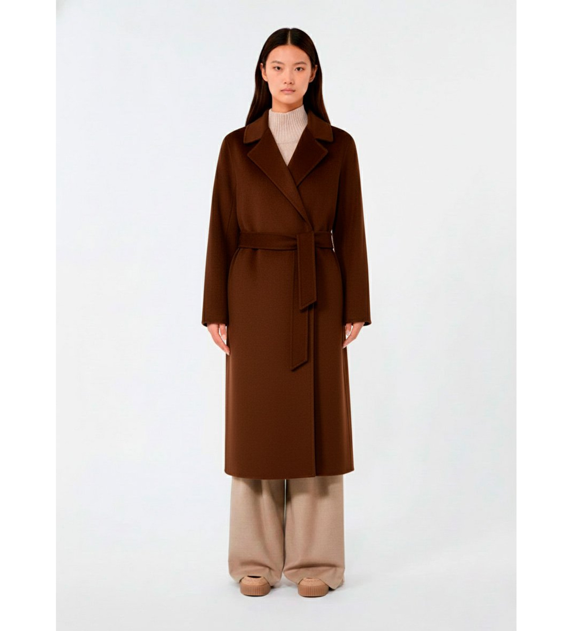 Midi-Mantel im Morgenmantel-Stil mit passendem Gürtel, der die feminine Silhouette betont.