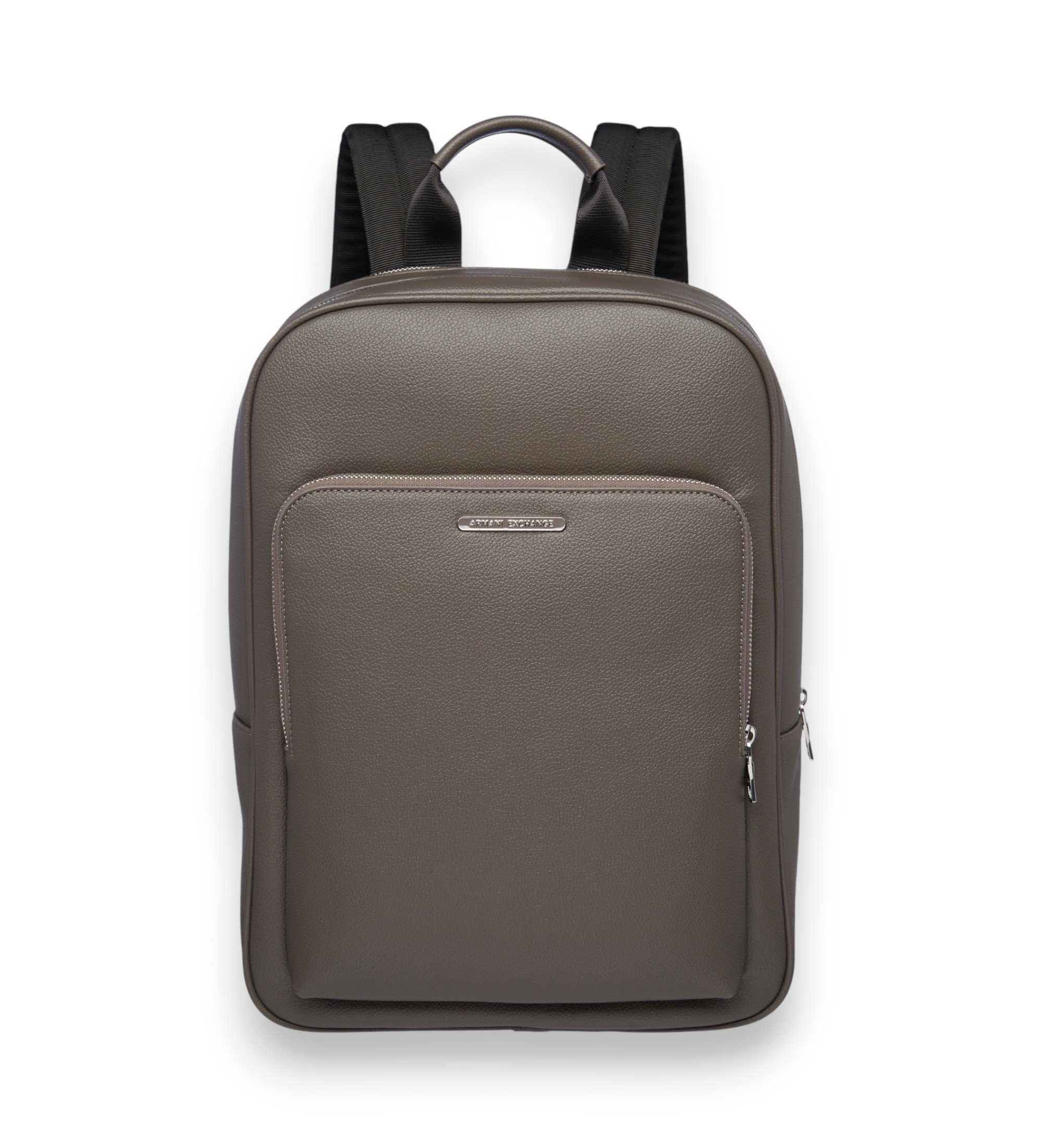 Compact backpack with a functional design, featuring two all-around top zips to create a double compartment, plus a large front pocket that takes up three-quarters of the front panel, offering increased storage capacity. Metal zips and pulls add strength and a sophisticated touch.