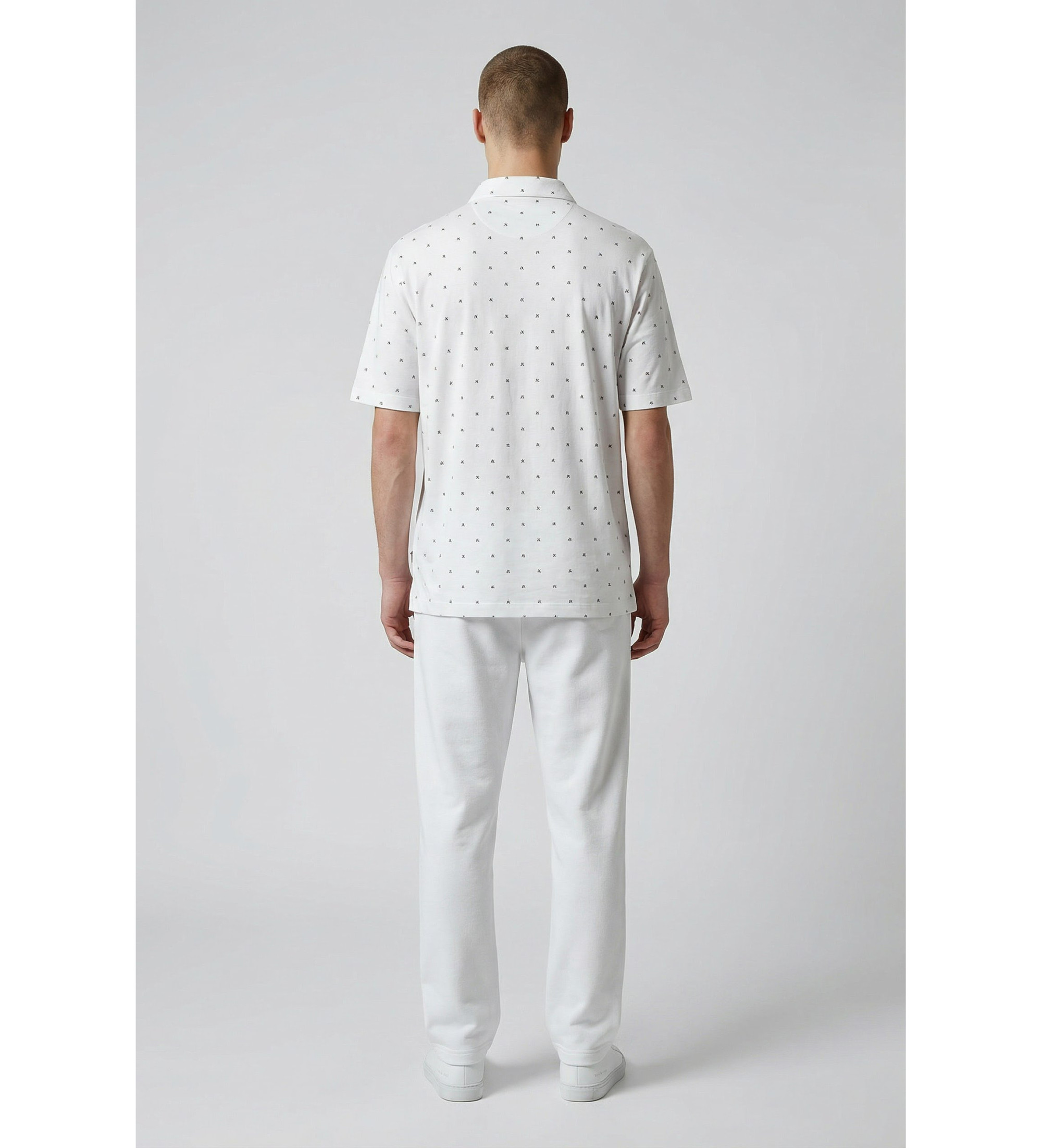 Knit polo shirt with all-over micro logo print. A piece that elevates the classic men's polo shirt with a subtle, sophisticated graphic detail, perfect for casual or smart-casual looks that seek a touch of distinction without fuss.