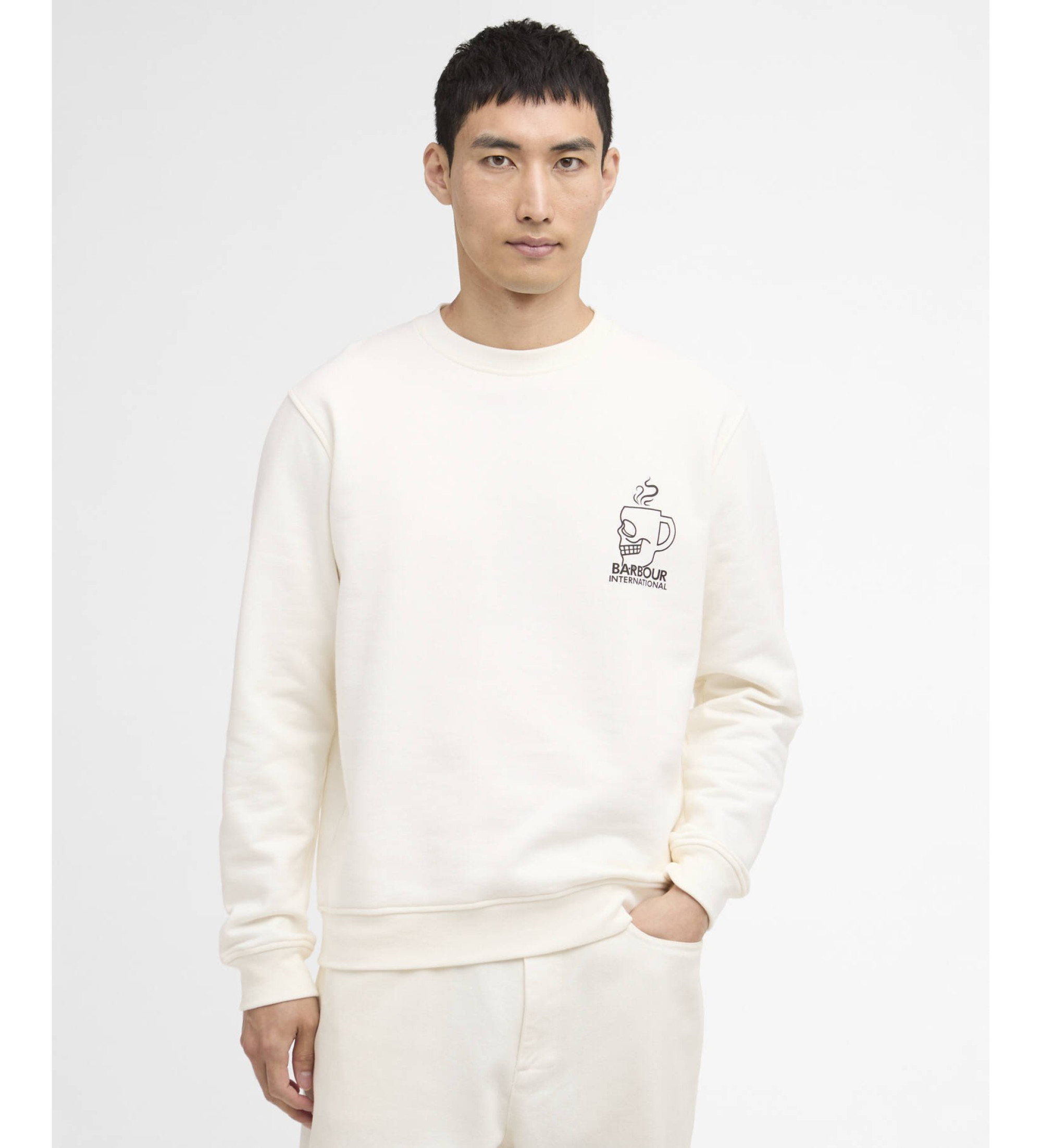 The B.Intl Staithes graphic print sweatshirt brings bold design to everyday comfort. Made from American fleece, this 100% cotton sweatshirt features a ribbed collar, cuffs and hem for a snug fit. The eye-catching "Broken Bone Cafe" graphic print on the shoulders and chest adds an eye-catching touch to this regular-fit staple.