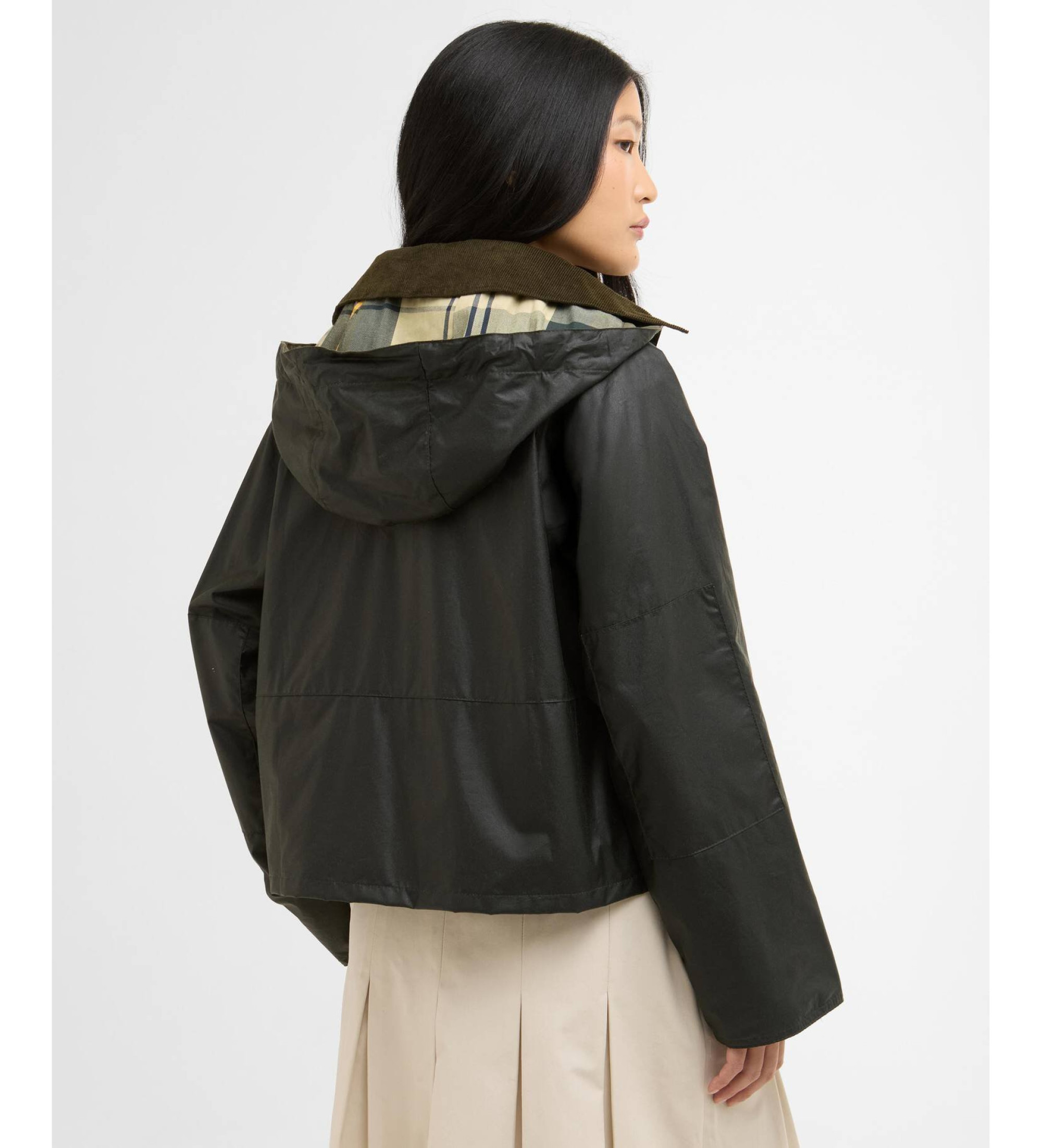 The Barbour Liza waxed jacket reinvents classic styling with a contemporary and functional twist. Inspired by the iconic Spey jacket from our archives, this short waxed jacket features multi-pocket detailing and a metal D-ring at the chest, a subtle nod to our roots in outdoor and fishing wear. Designed for versatility, it includes self-fabric elbow patches for durability and a detachable hood for versatile use. Inside, the body, hood and cuffs are lined with our signature tartan for warmth and timeless appeal. Seamlessly blending tradition and modern functionality, the Liza is a reliable garment designed for everyday adventures.