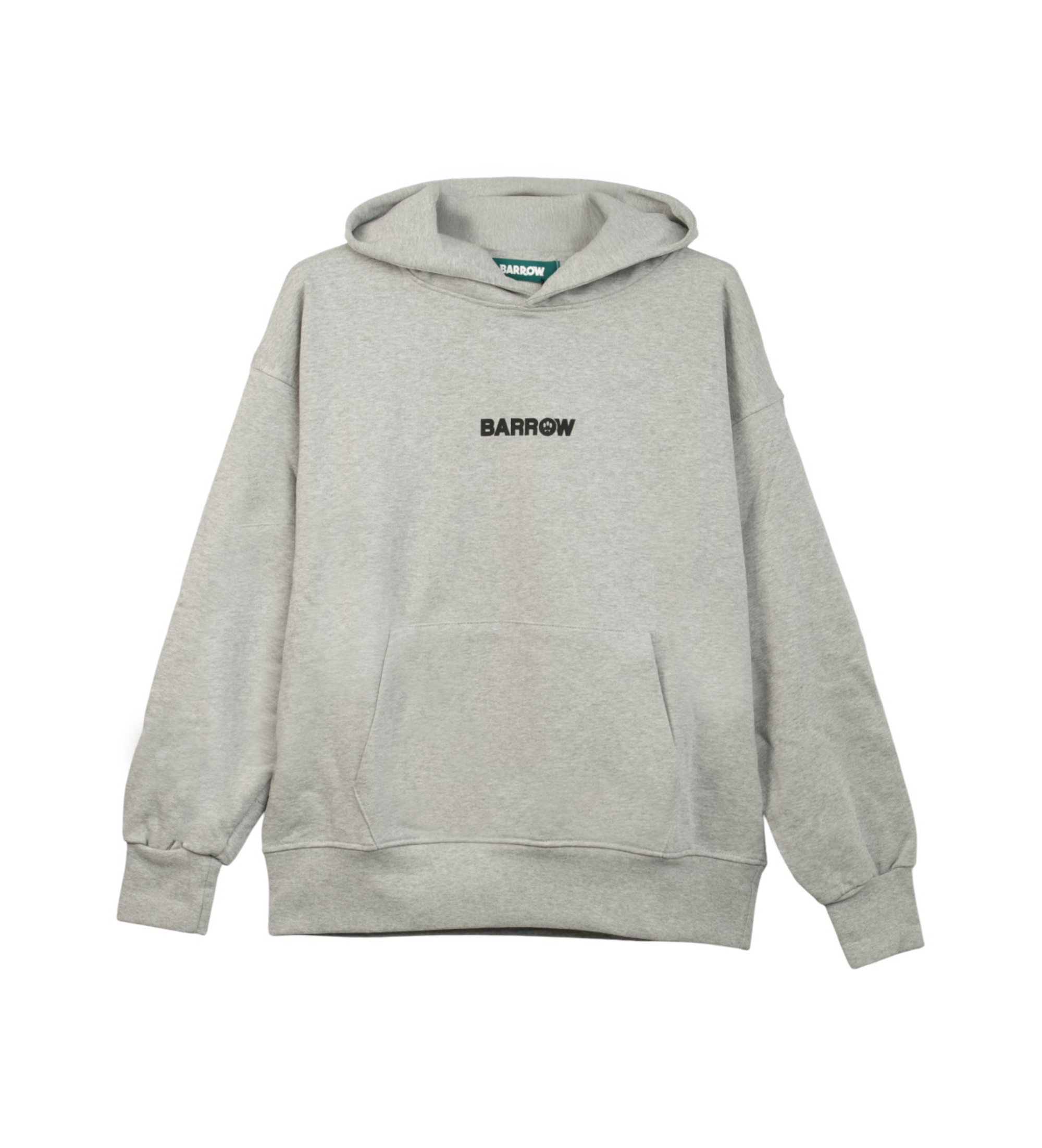 Barrow hooded sweatshirt in 100% cotton with oversized cut. It features the brand's logo embroidered on the chest and a maxi bear print with the word "PERFORMERS" on the back. It has a front kangaroo pocket and a small smile patch applied to the hood.