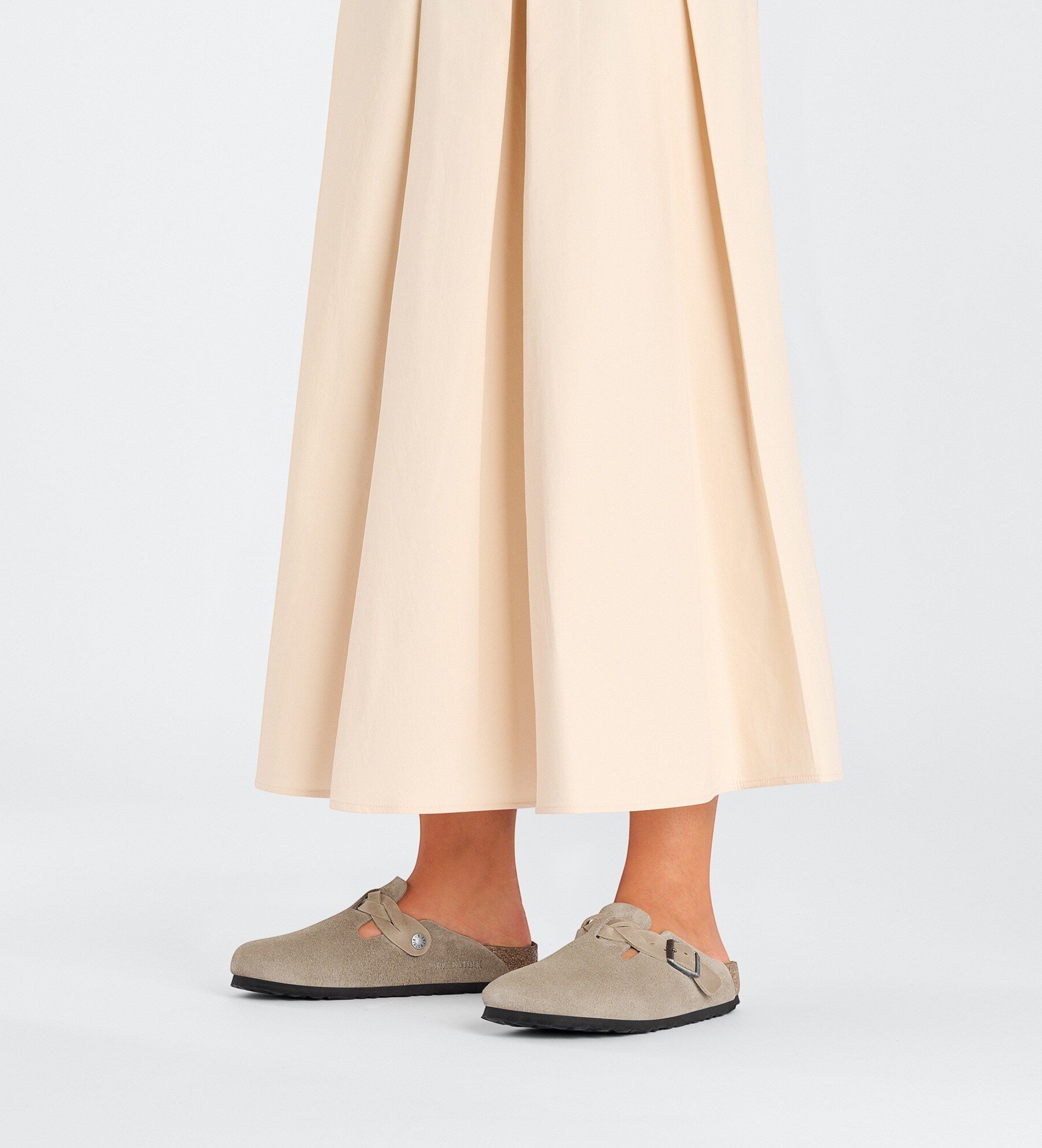 The Boston from BIRKENSTOCK is a true classic that can be worn all year round. With its refined design that can be individually adapted, the Boston clog has long enjoyed legendary status. This model has a very special detail: the straps have a braided pattern that is perfect for the modern bohemian look. The upper material is made of particularly soft suede that fits the foot like a glove.