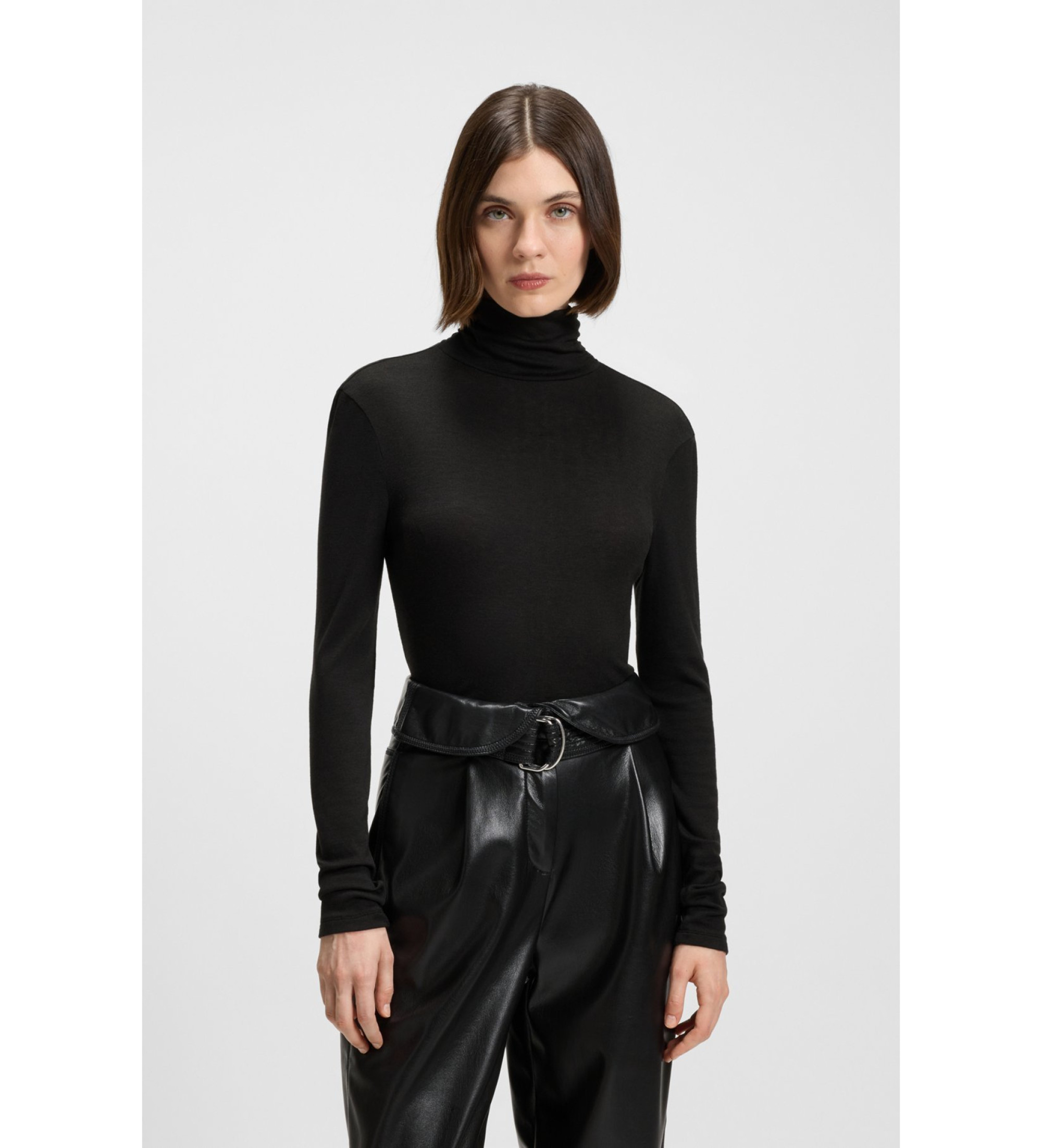 The BOSS women's Eliana Black T-shirt by BOSS combines chic, modern design with a comfortable fit. Perfect for casual occasions, it adds natural elegance to any outfit. With long sleeves and a timeless black colour, it is a great addition to any woman's wardrobe.