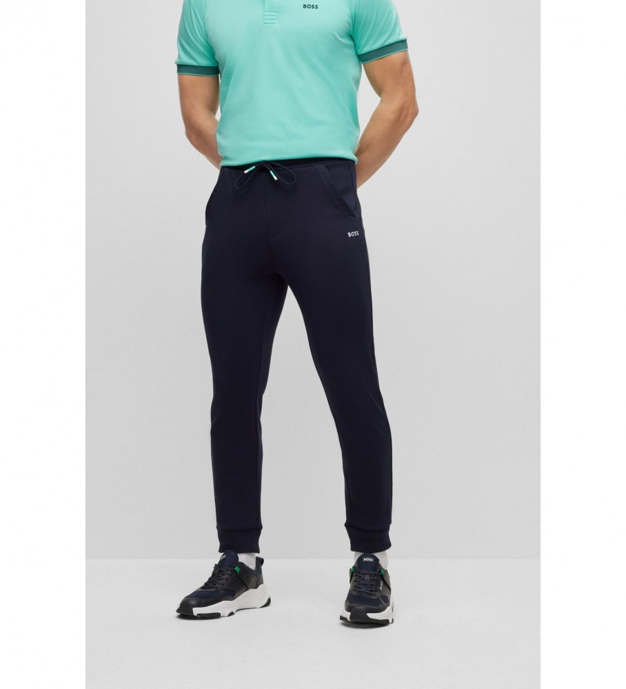 Regular-fit BOSS Menswear tracksuit bottoms in cotton blend, decorated with branded details and finished with multi-coloured embroidered logos on the back pocket.