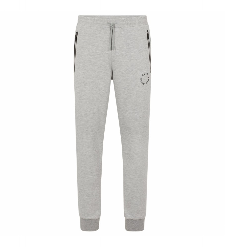 Regular-fit BOSS Menswear tracksuit bottoms in a cotton blend with embossed circular brand detail and zip pockets.
