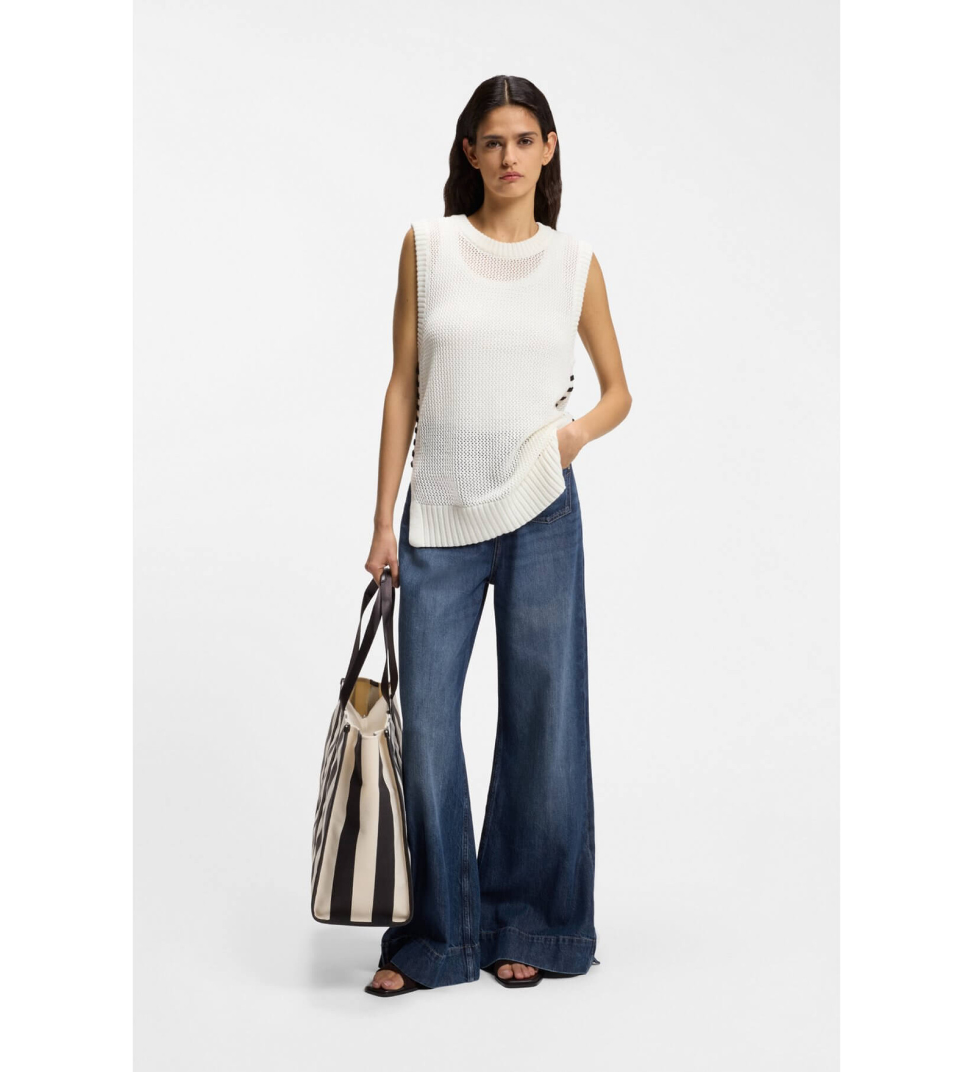 With stitched mini front pockets and a wide, flared leg, these BOSS Womenswear jeans have a '70s-inspired look. Blue cotton denim.