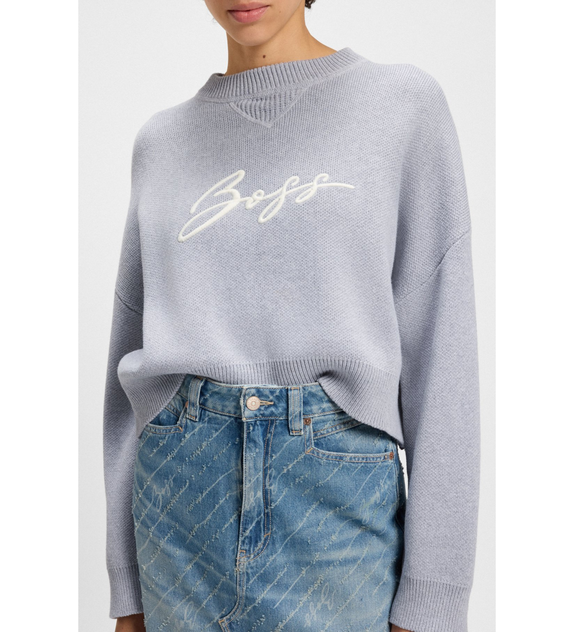 This elegant BOSS Finevra women's jumper in lilac by BOSS has a modern design to match any style. Designed for women who are looking for comfort and sophistication in their everyday outfits, it is perfect for any casual, sophisticated occasion.